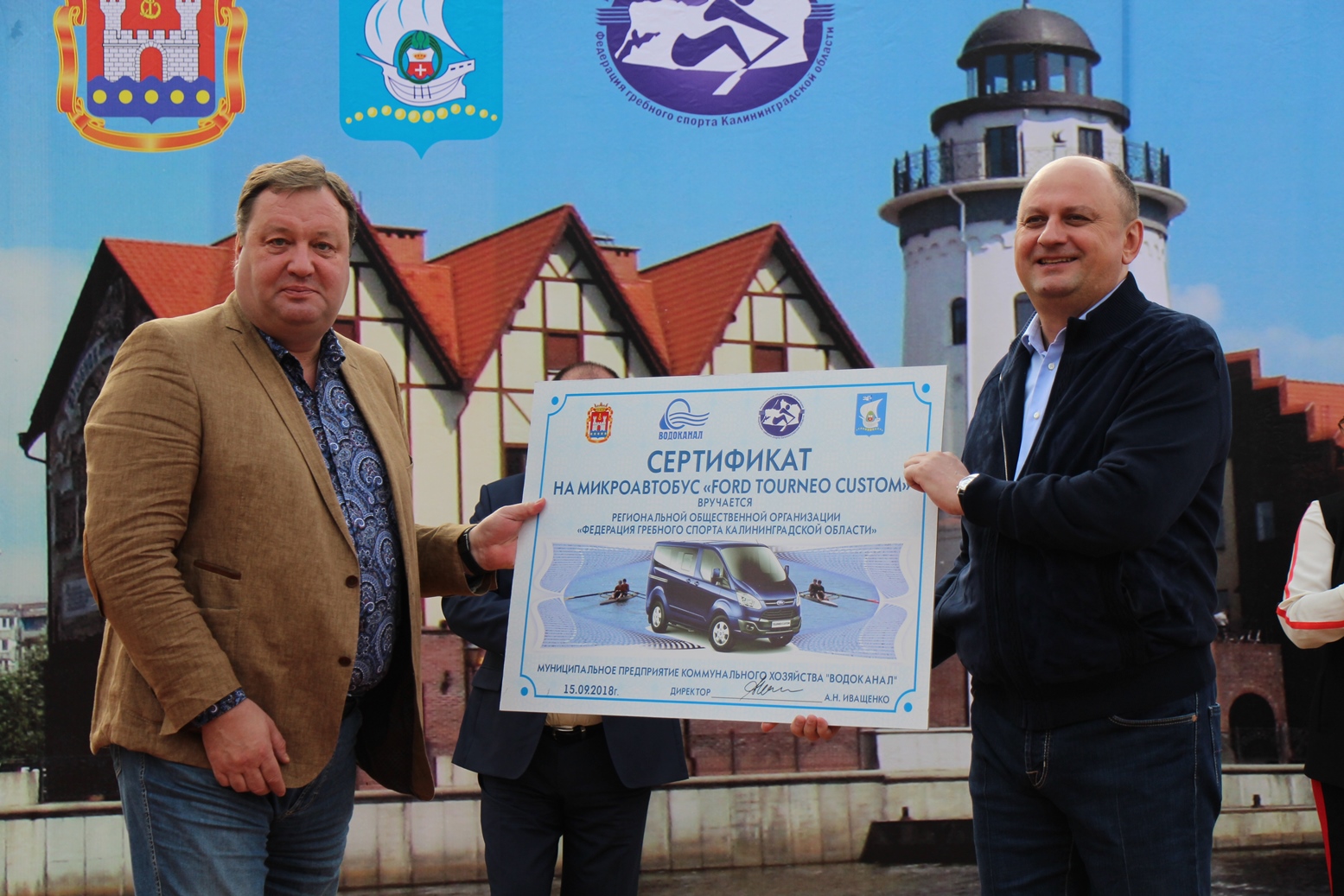 По согласованию с главой Калининграда, с Правительством региона МП «Водоканал» выступило спонсором областной федерации гребного спорта. Директор предприятия Александр Иващенко передал президенту федерации сертификат на микроавтобус - для обеспечения тренировочного процесса и выездов калининградских гребцов на соревнования за пределы области.