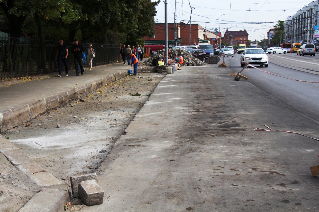 В районе Черняховского, 7 подрядчик уже начал работы по устройству заездного кармана из брусчатки. Как пояснили в МКУ «Городское дорожное строительство и ремонт», на другой стороне улицы нет возможности сделать полноценный карман. Остановочный пункт на ул.Черняховского, 8-12 обозначат соответствующими дорожными знаками и разметкой.