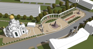 В заключении, вместе с жителями поселка Чкаловск был обсужден эскиз и концепция проекта сквера и макета памятника святого равноапостольного князя Владимира. Разместить сквер планируется на территории между храмом и мемориальным комплексом на улице Лукашова. Архитектор Олег Копылов продемонстрировал 3-D проект сквера, а скульптор Андрей Шевцов показал макет скульптуры князя Владимира, выполненный из пластилина в масштабе 1:10. По словам автора, прежде чем приступить к работе, он много читал о личности князя Владимира, изучал уже существующие памятники. В его мастерской остались еще несколько эскизов, но он выбрал лучший. По замыслу, высота постамента составит 4 метра, а самой скульптуры 4,5 метра. «Владимир знаменит тем, что объединил удельные княжества, у меня получился образ воинственный, мужественный, - рассказал Андрей Николаевич, - но в то же время шлем снят, щит опущен, меч перевернут лезвием вниз. То есть, он как бы призывает прекратить распри. И одновременно такой меч напоминает по форме крест, символ крещения Руси и призыв к миру».