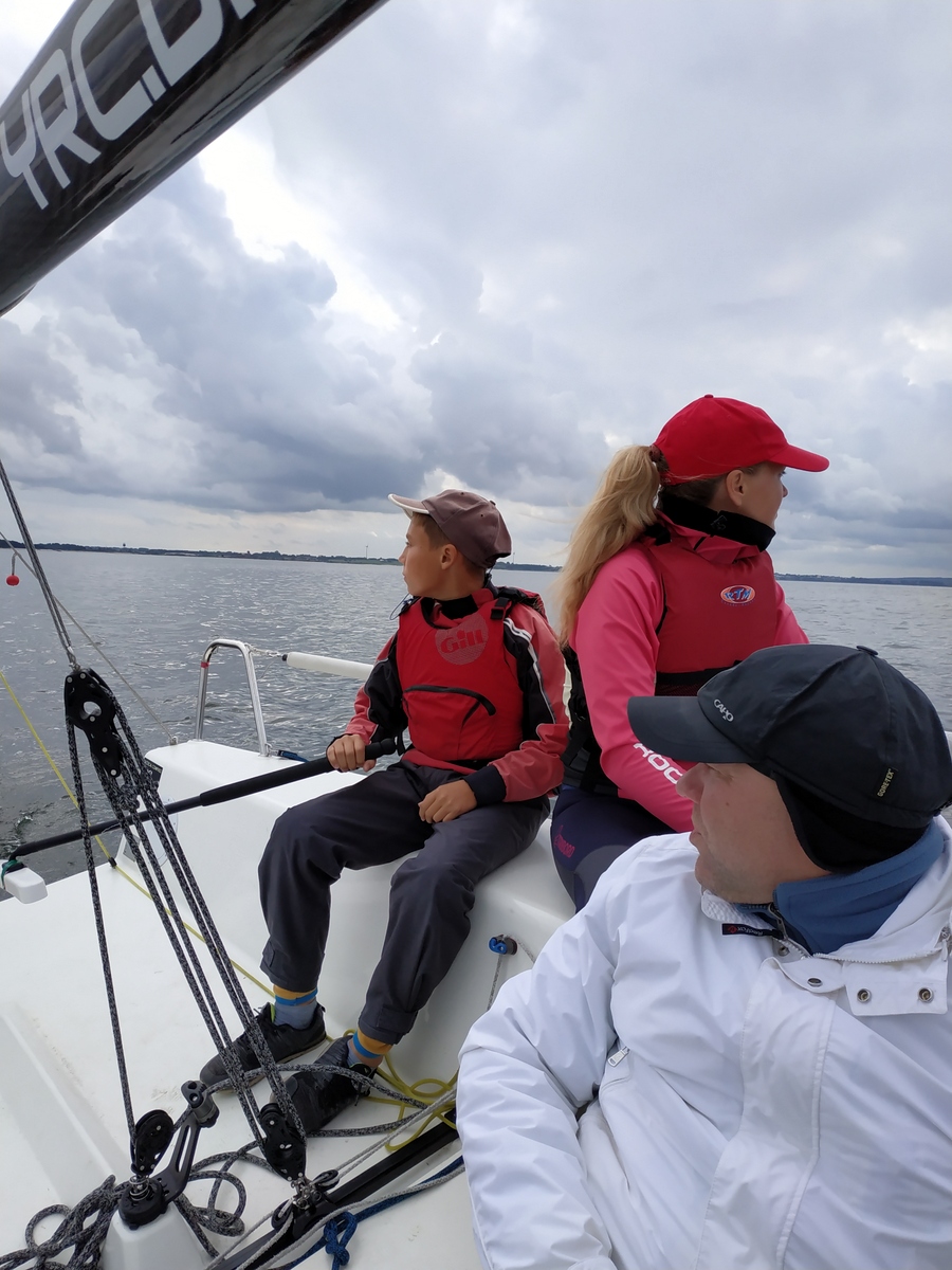 В воскресенье юные воспитанники на детских лодках провели малый офшорный кубок - от родной гавани до противоположной стороны залива и обратно. Для ребят эта гонка тоже стала серьезным испытанием, ведь ее продолжительность была почти два часа, что в пять раз больше обычных гонок. В середине дистанции, когда родного берега уже практически не было видно, ветер усилился. Но все справились и дошли до финиша. Победителем в классе Оптимист стал Владимир Некрасов.