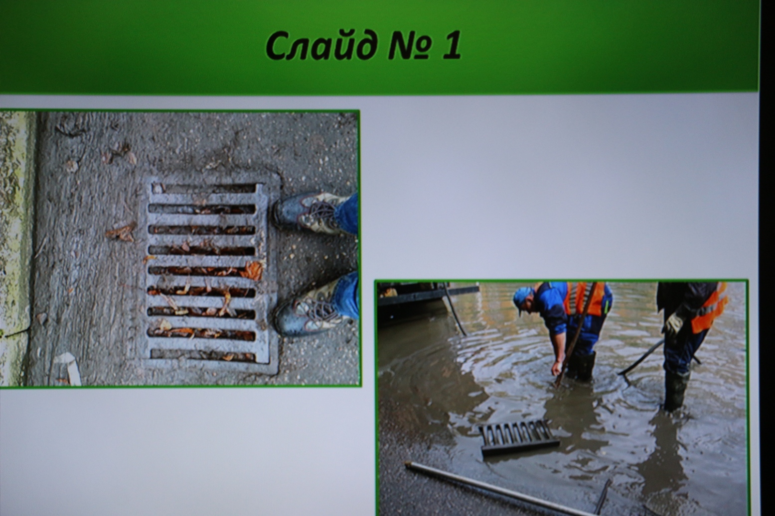 Представитель МБУ «Гидротехник» Сергей Асташов выступил с докладом, в котором предложил заменить существующие дождеприемные колодцы довоенной постройки на колодцы увеличенного размера из железобетона с установкой антивандальной защиты. Он сообщил, что в Калининграде сегодня около 4000 ливневых колодцев с люками находятся на обслуживании «Гидротехника», и ежемесячно какие-то из них приходится менять и восстанавливать, большей частью из-за того, что их намеренно повреждают.