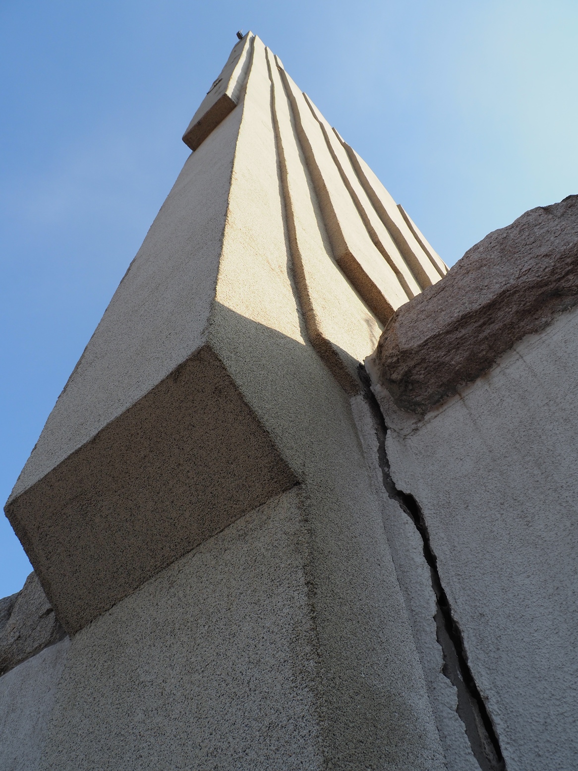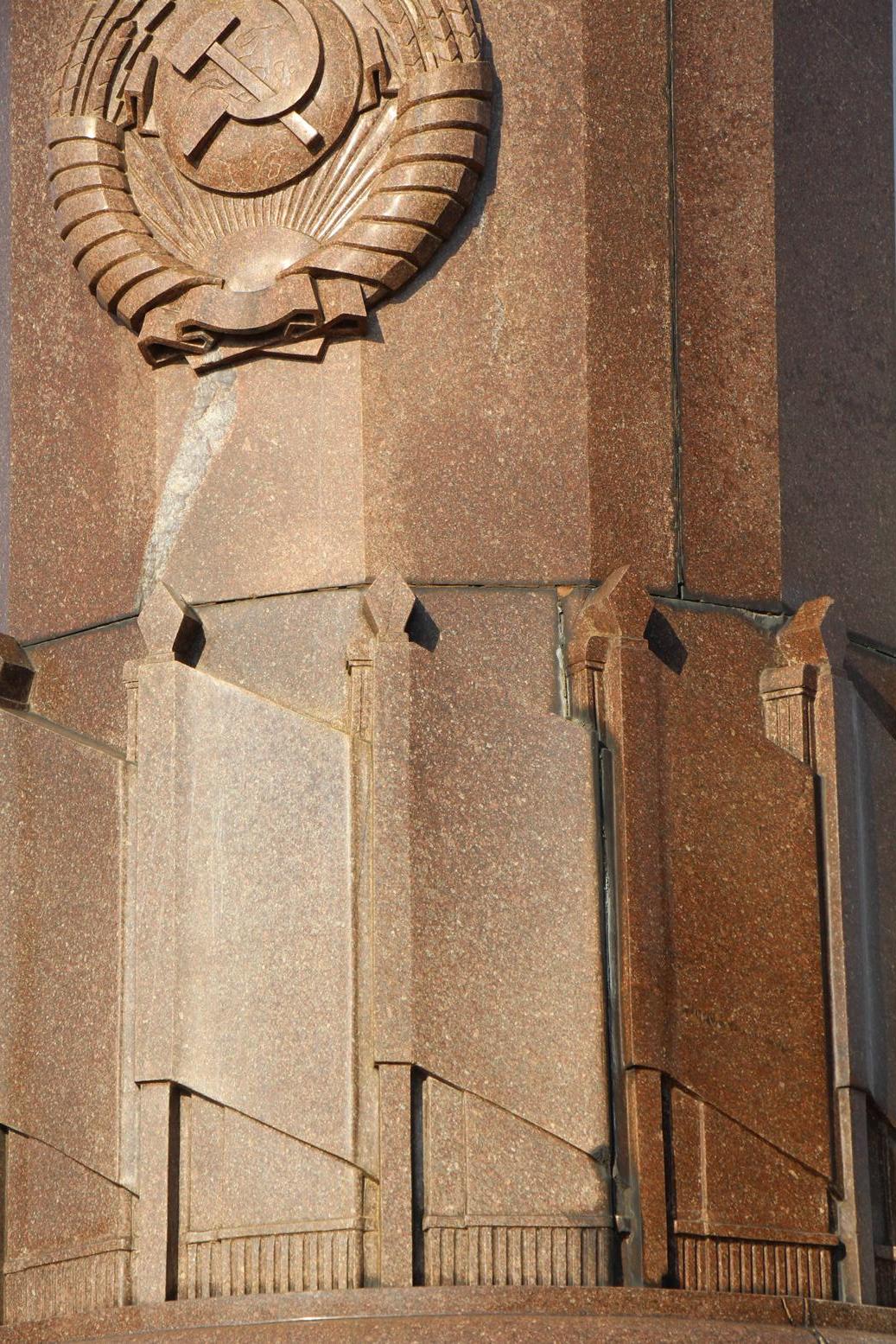 Это касается и мемориала «Морякам-балтийцам», точнее, стены и стелы, которые также входят в мемориальный ансамбль. Трещины позволяют говорить об их неблагополучном состоянии, а положение сигнальных «маячков» о том, что ситуация усугубляется.