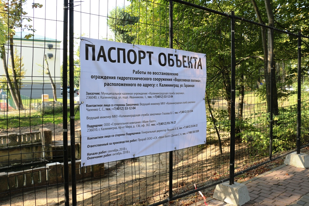 с 2,6 млн рублей до 1,9 млн рублей. Работы на объекте ведет ООО СК «Маяк-Балт». К началу ноября подрядчику предстоит восстановить разрушенные элементы бетонного ограждения, а также очистить сохранившиеся бетонные поверхности ограждения плотины, провести их антигрибковую обработку и шлифовку. Проектом также предусмотрено обустройство лестничного спуска к плотине и кованого ограждения. Смотровую площадку около плотины выложат серой, желтой и красной плиткой.