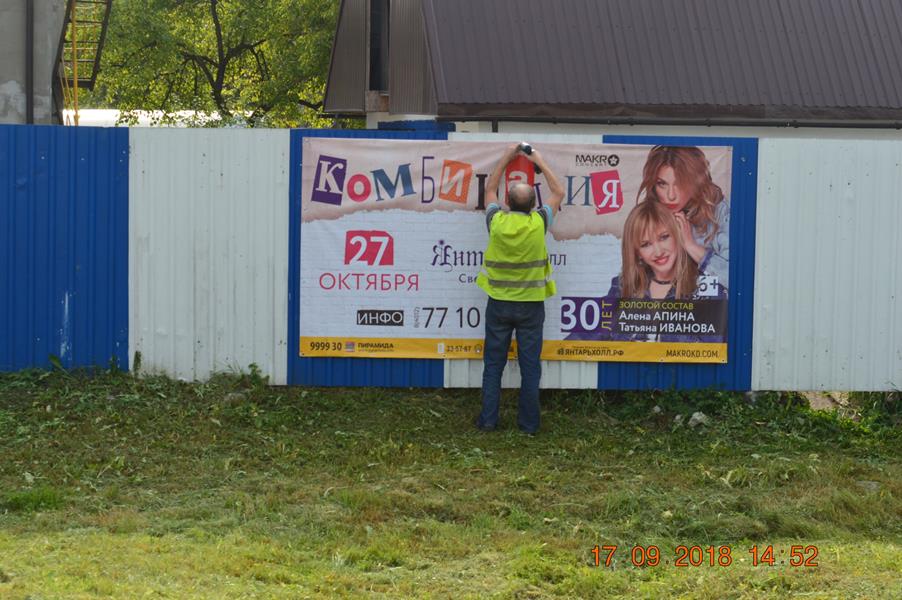 По поручению главы Калининграда Алексея Силанова особое внимание в городе уделяется борьбе с незаконной рекламой. Выявление и демонтаж самовольных баннеров, щитов, штендеров, других конструкций сотрудники отдела рекламы комитета архитектуры и строительства (КАиС) ведут ежедневно. С 1 января 2018 года по состоянию на 21 сентября в Калининграде демонтировано 1838 рекламных конструкций.