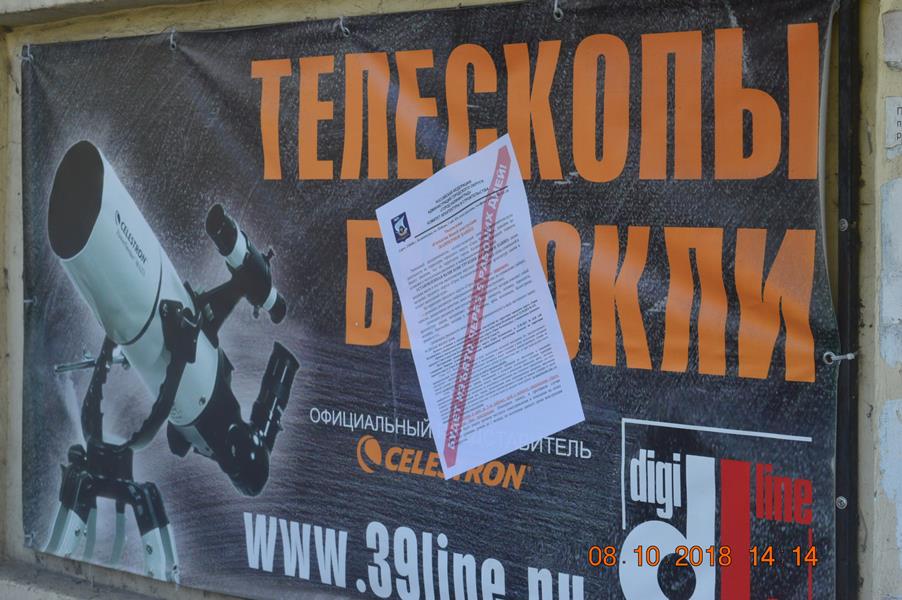 На сайте администрации размещено уведомление о недопустимости нарушения законодательства о рекламе и в сфере благоустройства. Такие же уведомления разосланы в калининградские отделения союзов архитекторов, строителей, предпринимателям. Они же вручаются нарушителям сотрудниками отдела рекламы в ходе их ежедневной работы.