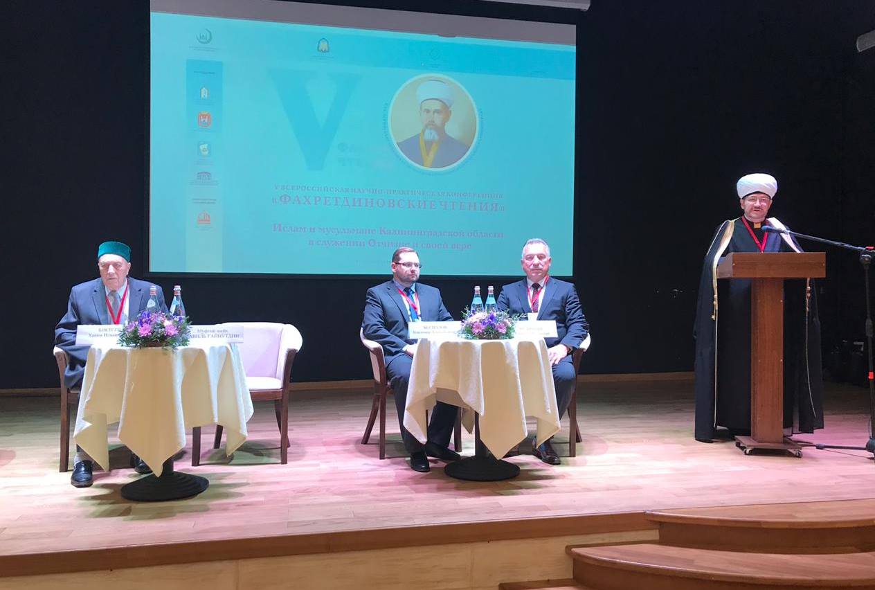 «Фахретдиновские чтения» открыл председатель Духовного управления мусульман Российской Федерации и Совета муфтиев России, член Совета по взаимодействию с религиозными объединениями при Президенте Российской Федерации муфтий шейх Равиль Гайнутдин. Поздравив калининградских мусульман с юбилеем общины, муфтий шейх Равиль Гайнутдин отметил значительную роль ее основателя – одного из старейшин Калининграда Хакима Исмаиловича Биктеева. По его словам, мусульманская община Калининграда, ставшая одним из соучредителей Духовного управления мусульман Российской Федерации в 1990-х годах, сейчас является одним из лучших примеров взаимодействия с другими религиозными организациями в деле поддержания межрелигиозного мира на местном уровне: «Благодаря верности исламским идеалам, мудрости аксакалов — основоположников мусульманской организации города и области, прежде всего, в лице нашего уважаемого ветерана Хакима хазрата Биктеева, трудолюбию, терпению руководителей общин, искреннему бескорыстному служению их духовенства, мусульманская община Калининградской области является сегодня образцовой и может быть поставлена в пример в отношении духа братства и солидарности, утверждения в обществе ценностей взаимоподдержки, милосердия, законопослушности, за почтение, проявляемое к своим старейшинам и доброту в отношении к детям, к соседям, к тем, кто оказался в сложной жизненной ситуации. Хочу подчеркнуть, что эта преданность своему духовному фундаменту, трудолюбие калининградских мусульман находит понимание и уважение как в обществе, так и в лице областных и городских властей. За 25 лет сотрудничества общине совместно со структурами государства и местного самоуправления удалось многое решить и воплотить в жизнь важные начинания. В регионе работают молельные дома, налажено начальное исламское просвещение».