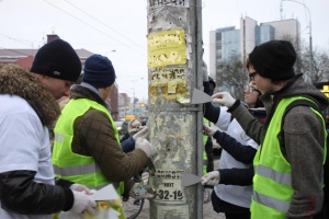 Как пояснил ведущий специалист отдела по делам молодежи городского управления спорта и молодежной политики Василий Хитрый, сегодня прошла первая в 2015 году массовая акция в рамках «Активного жителя», и впервые молодежь очищала опоры контактной сети горэлектротранспорта и сетей наружного освещения от различных объявлений и других рекламных материалов. В мероприятии приняли участие более 40 молодых людей. Юноши и девушки очищали от рекламного мусора столбы, расположенные вдоль Гвардейского, Советского, Ленинского проспектов и проспекта Мира, а также улиц Черняховского, А. Невского, Гаражной и Театральной.