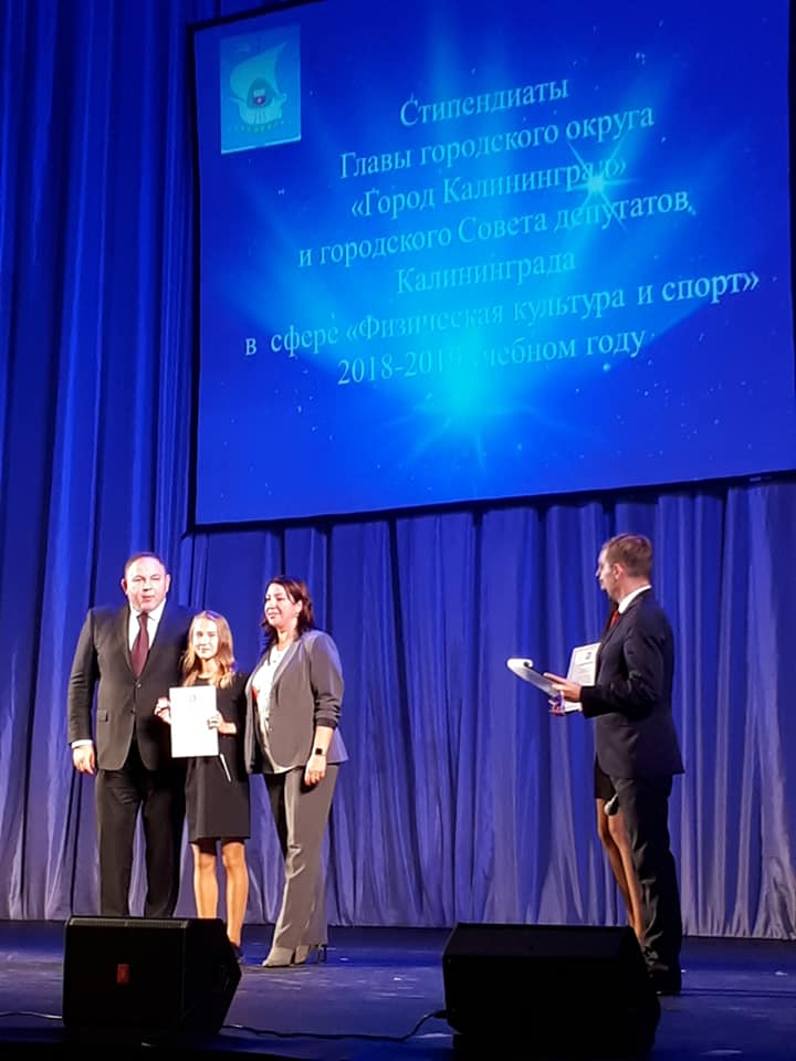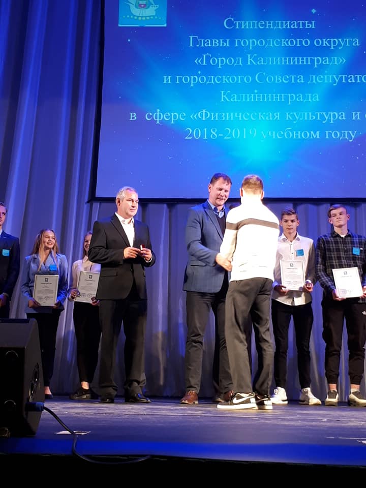 30 октября в Доме искусств на церемонии посвящения в стипендиаты главы городского округа "Город Калининград" и городского Совета депутатов Калининграда свидетельства стипендиатов вручили большому отряду калининградских спортсменов.