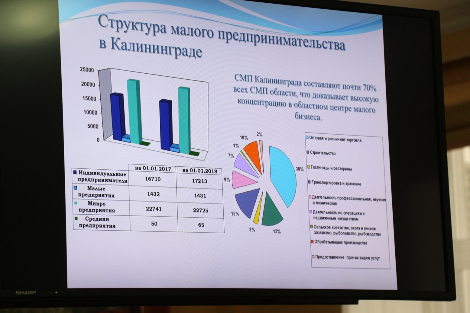 Основное внимание на этот раз было уделено итогам реализации муниципальной программы «Развитие малого и среднего предпринимательства в городском округе «город Калининград» в 2018 году и планам на 2019 год. В своем докладе заместитель председателя комитета экономики, финансов и контроля, начальник управления экономического развития администрации Калининграда Наталья Шарошина, в частности, отметила, что в текущем году в рамках выше названной программы было проведено 32 семинара для бизнес-сообщества, в том числе 5 семинаров для безработных граждан на тему «Введение в предпринимательскую деятельность», 19 – для учащейся молодежи на тему «Как открыть свое дело», 8 – для действующих предпринимателей по различным актуальным темам – от участия в госзакупках до предостережения от типичных ошибок.