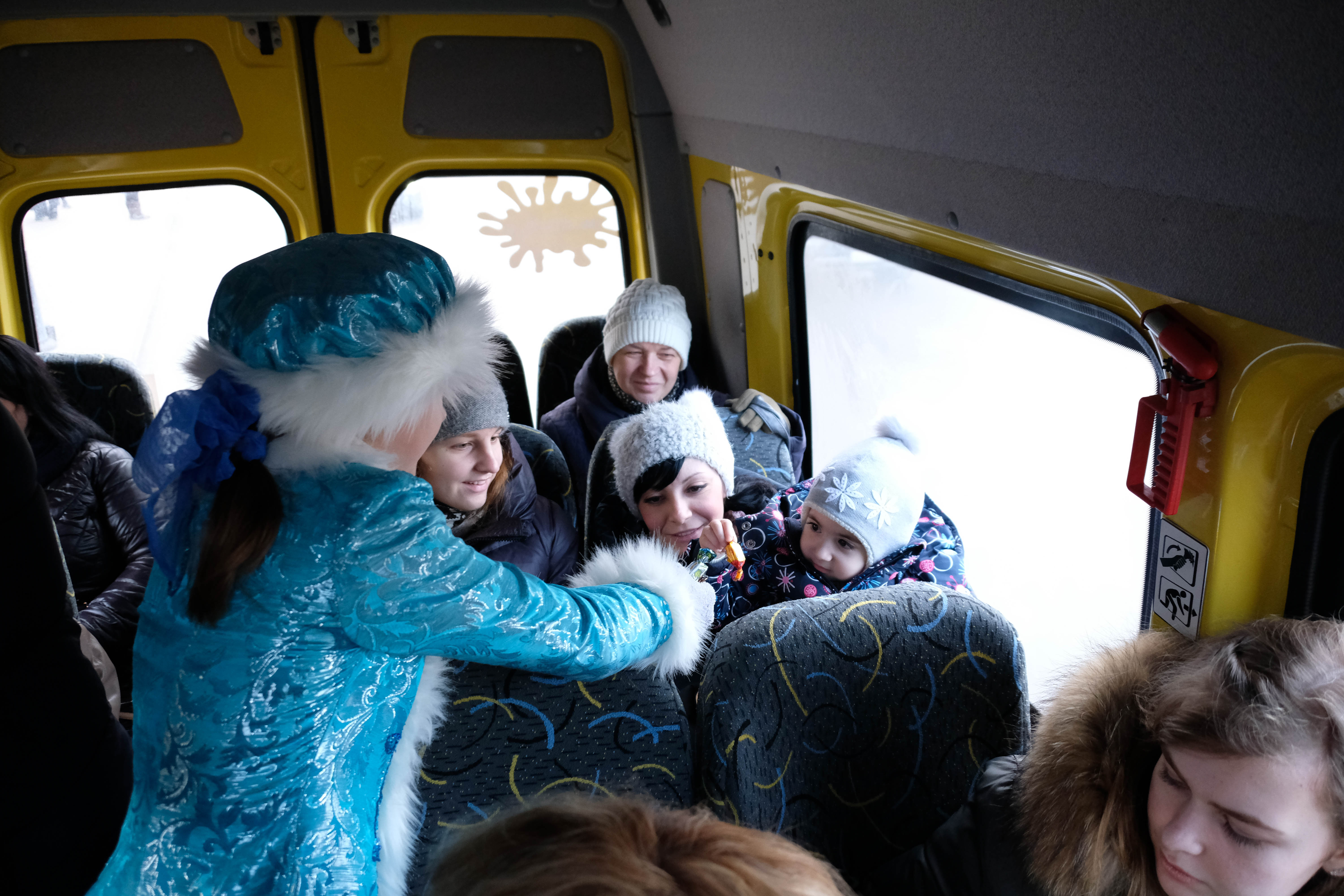 С появлением сказочных героев сразу же возникала особая новогодняя атмосфера. Звучали стихи и песни, которые с удовольствием исполняли и дети и взрослые. И это продолжалось не только в салонах, но и на остановках общественного транспорта. И, как заключительный аккорд таких встреч – фото на память, чтобы можно было поделиться со всеми радостным предновогодним настроением.