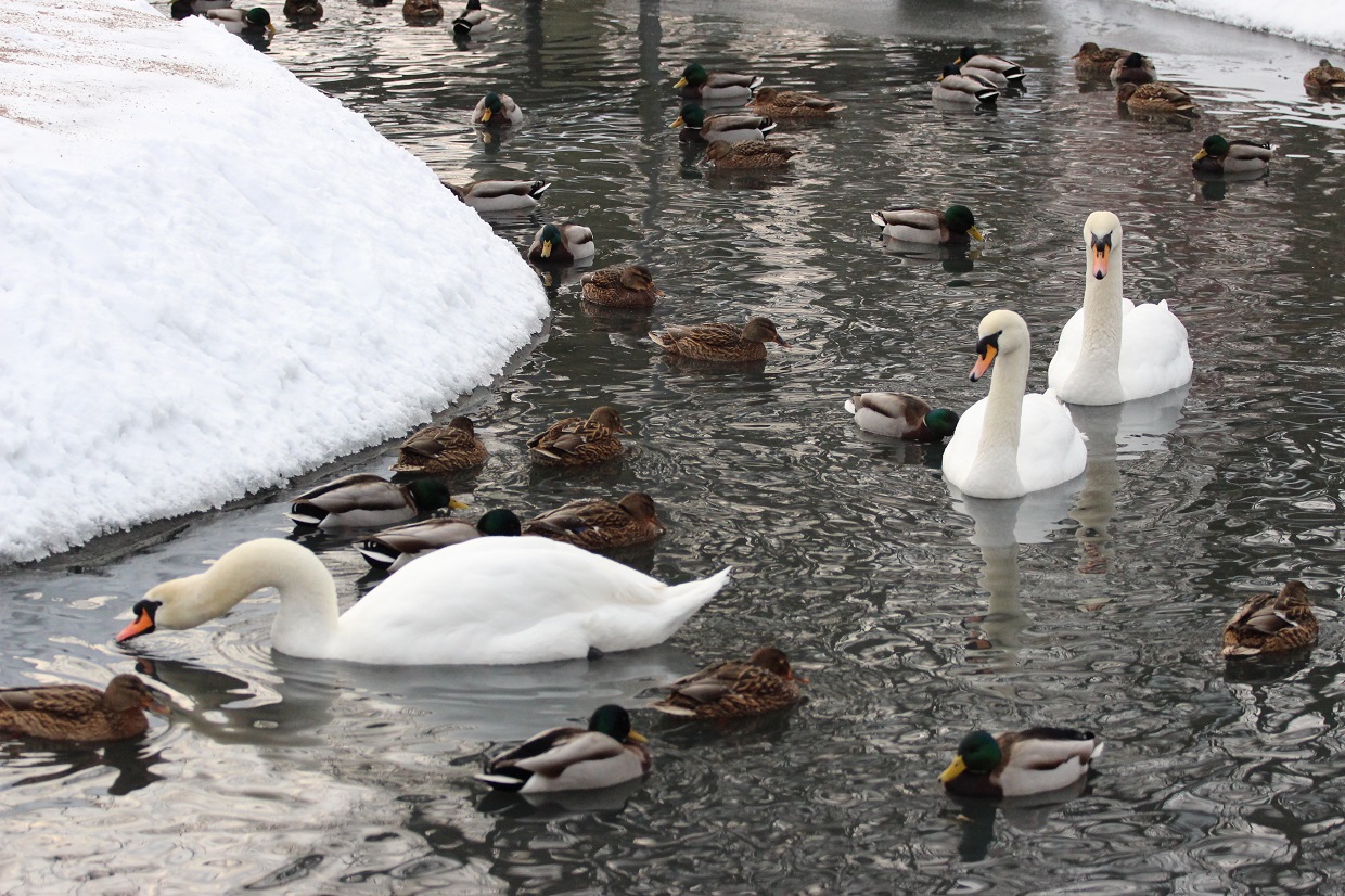 - своими глазами увидеть, что же должны есть лебеди зимой,