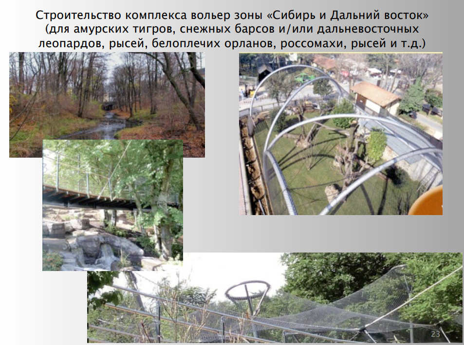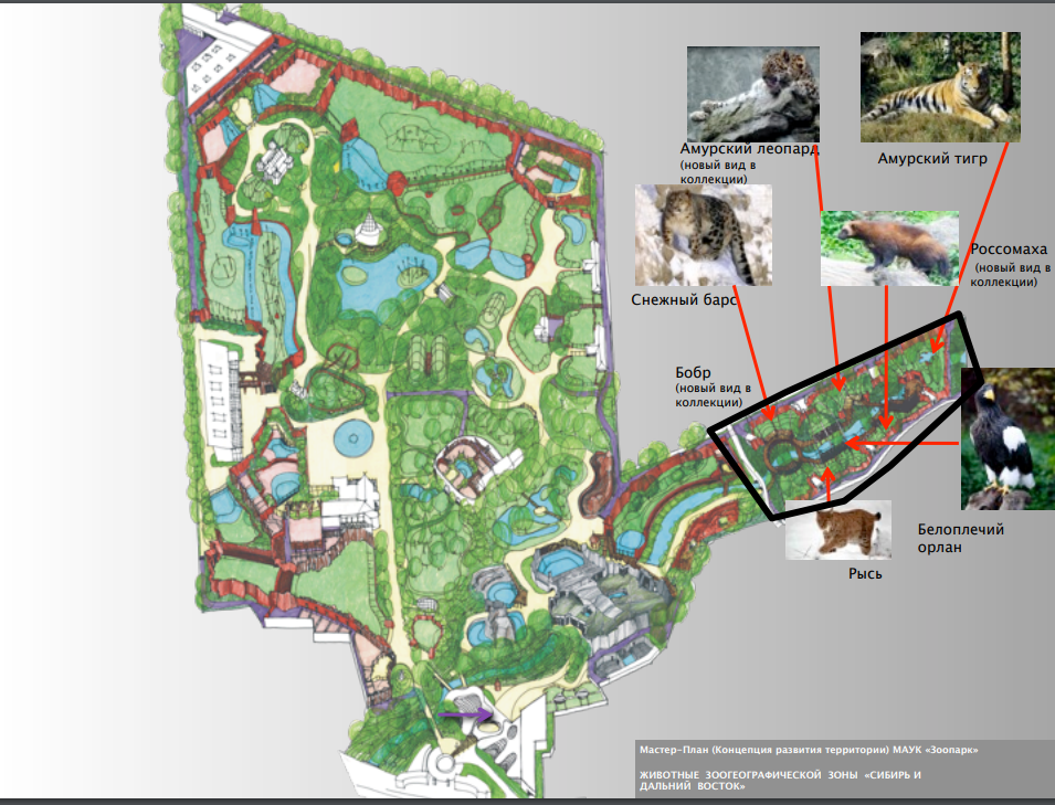 Согласно Концепции развития территории зоопарка в перспективе в этой части появится зоогеографическая зона Сибири и Дальнего Востока с демонстрацией соответствующих видов животных: амурского леопарда, амурского тигра, бурых медведей, снежного барса, росомахи, белоплечих орланов, рысей и т.п.