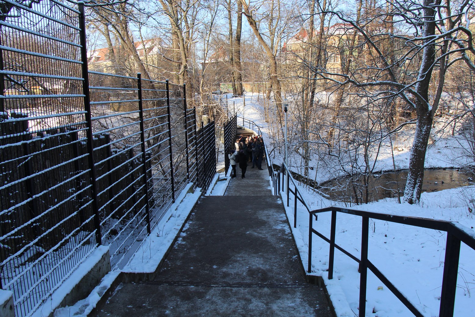 Участники совещания и журналисты встретились за оградой зоопарка, на улице Шота Руставели. Мало кто из горожан знает, что заросшая самосевом и захламленная территория вдоль ручья – территория зоопарка. Она тянется вдоль Паркового ручья от мостика, соединяющего улицу Римского-Корсакова с улицей Носова, до моста по улице Брамса.