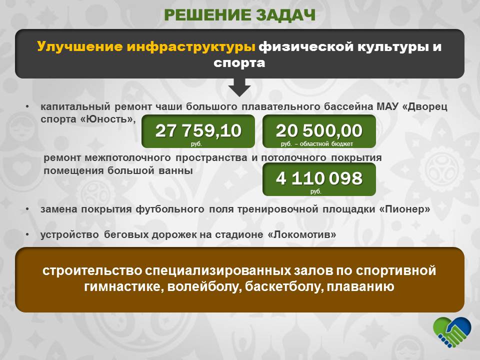 Алексей Силанов предложил проанализировать возможности муниципально-частного сотрудничества, более широкого использования спортивных объектов различных форм собственности. Такое направление, по словам главы города, позволит достигнуть двух целей: обеспечить возможность для самореализации и развития спортивных способностей, оздоровления населения, а также более рационально расходовать бюджетные средства, которые можно будет направить на оплату непосредственно занятий, и снять с бюджета бремя содержания залов и сооружений.