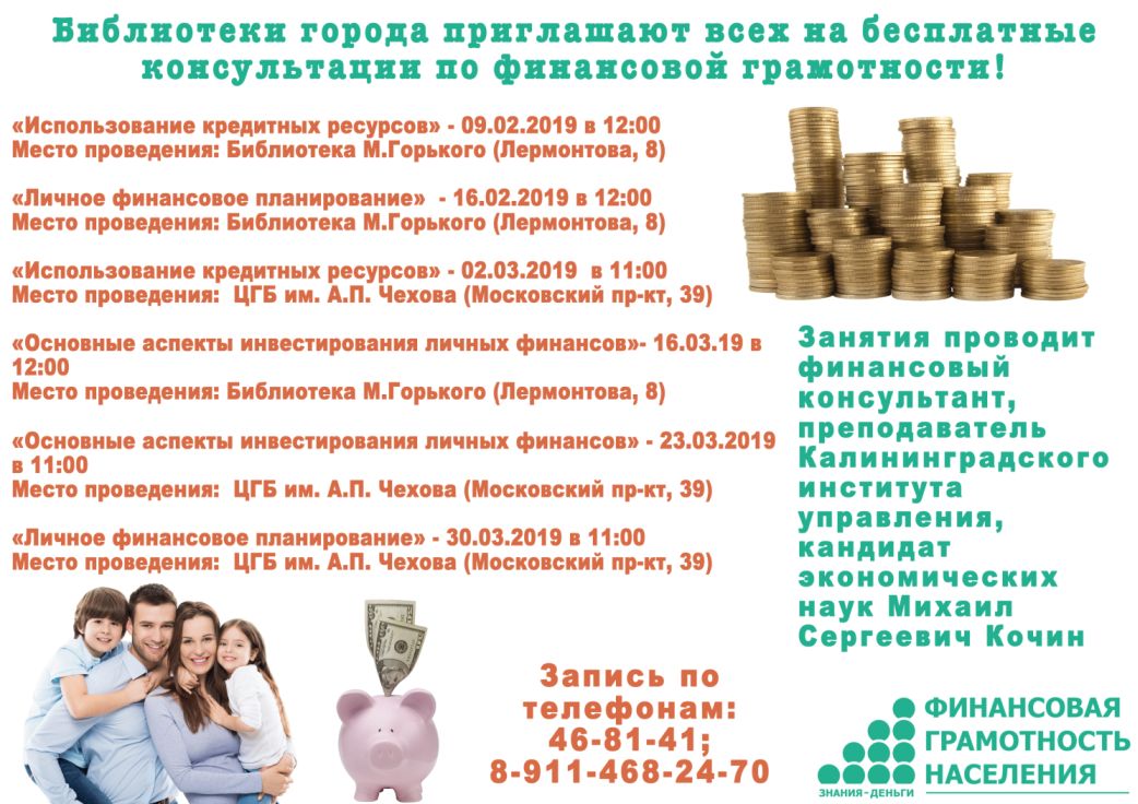 Калининградская централизованная библиотечная система предлагает бесплатные консультации по финансовой грамотности в рамках программы регионального Министерства финансов.