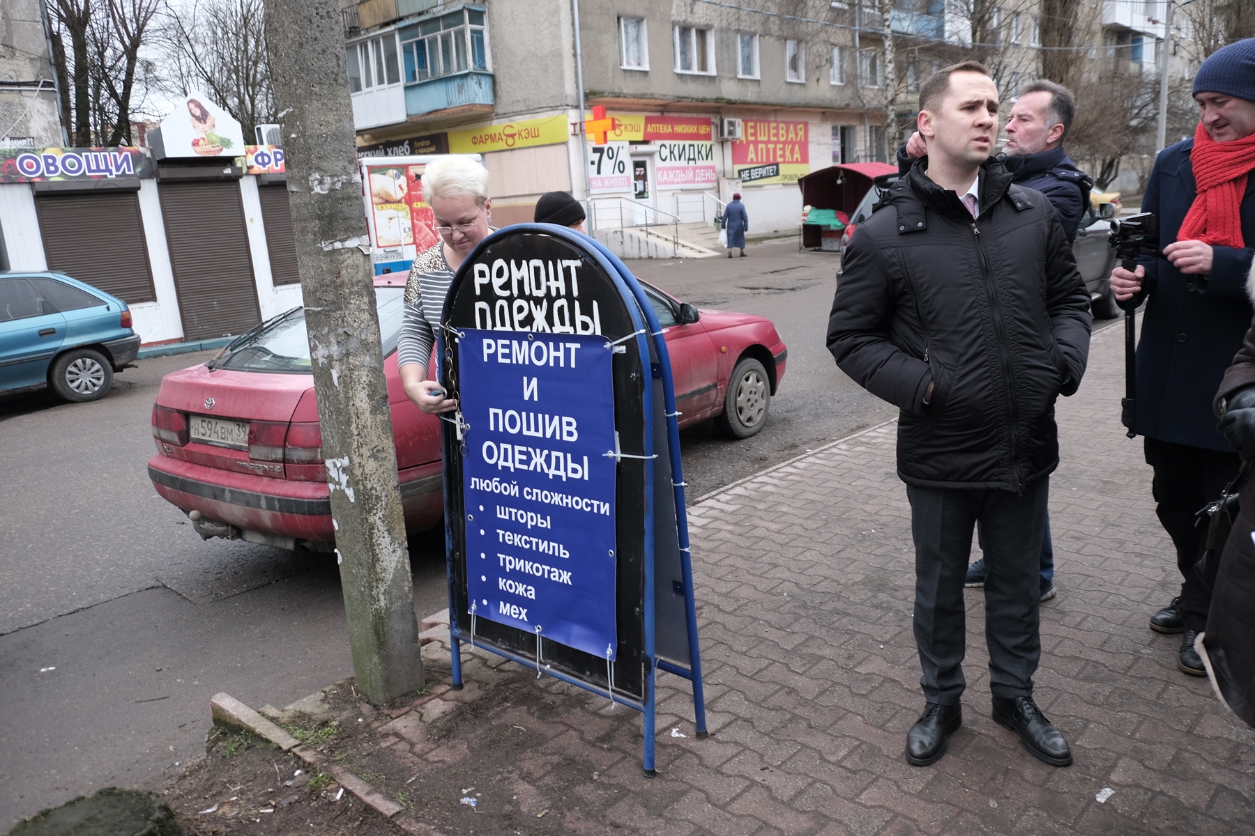 Контрольные мероприятия прошли на ул. Миклухо-Маклая и Белибейской. Специалисты отдела жилищного контроля и контроля в сфере благоустройства разместили на незаконных НТО: «Пресса» и «Мясной павильон» объявления-предупреждения о том, что «в случае не обращения в указанный срок и не предоставление документов объект будет снесен». Специалисты убрали расклеенные объявления на опорах и столбах, незаконную рекламу и конструкции возле магазина. Телефоны, указанные в объявлениях, ставятся на автодозвон и их владельцев предупреждают о недопустимости расклейки рекламных объявлений. Представитель «Янтарьэнерго» Алексей Татаринцев и старший участковый майор полиции Вадим Пустовалов приняли участие в рейде. Был зафиксирован ряд фактов незаконной торговли, составлены протоколы.