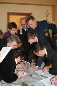 Как сообщает пресс-служба мэрии, это только один из эпизодов учений городской комиссии по чрезвычайным ситуациям, которые проведены в Калининграде представителями Северо-Западного управления МЧС России. Для проверки отработки задач руководством города была смоделирована чрезвычайная ситуация. По «легенде», утром от дежурного водопроводной станции "Московская" поступило сообщение о том, что в результате разгерметизации контейнера произошел выброс хлора в количестве 820 кг. При этом «пострадало» 3 человека из обслуживающего персонала. Городская КЧС под руководством первого вице-мэра Юрия Беденко немедленно собралась в полном составе и приступила к ликвидации последствий условной «аварии». В так называемый «район бедствия» выехала оперативная группа и дежурная смена спасателей управления по делам ГО и ЧС.