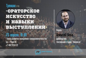 23 апреля пройдет уникальный мастер-класс по ораторскому искусству от руководителя театральной студии «Эволюция» Алексея Бебы. Запись на мастер-класс по ссылке: https://docs.google.com/forms/d/1IqN-JdhMQfKHH6P8xCFb. Начало занятия в 16.00.