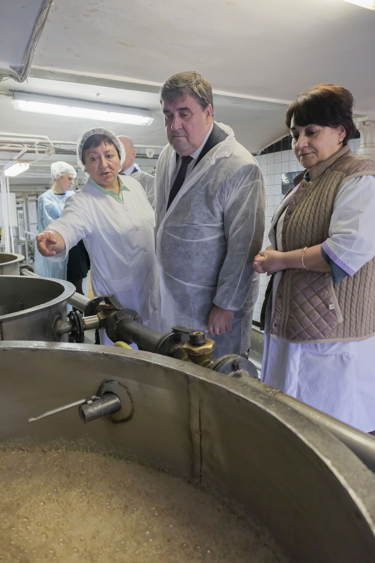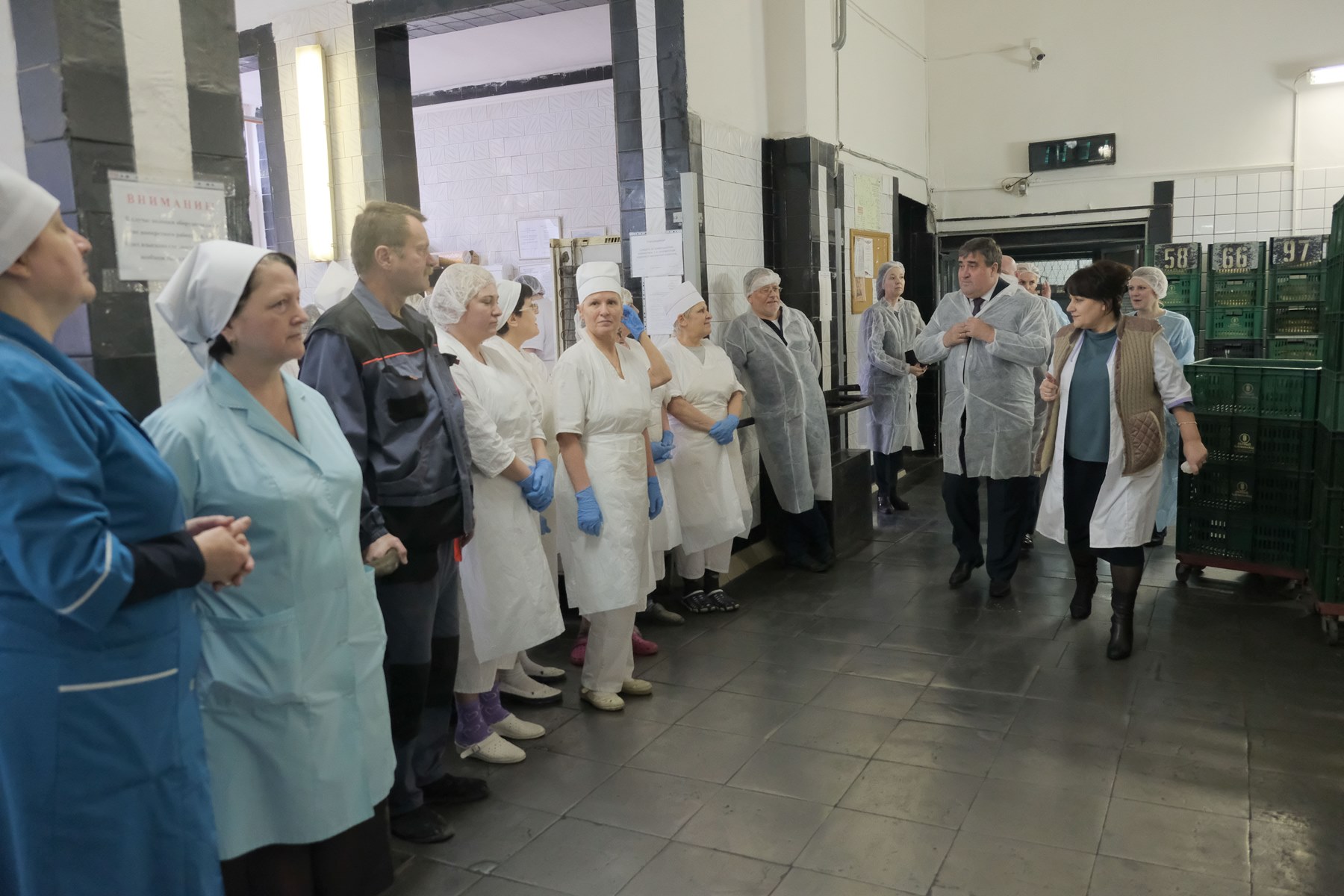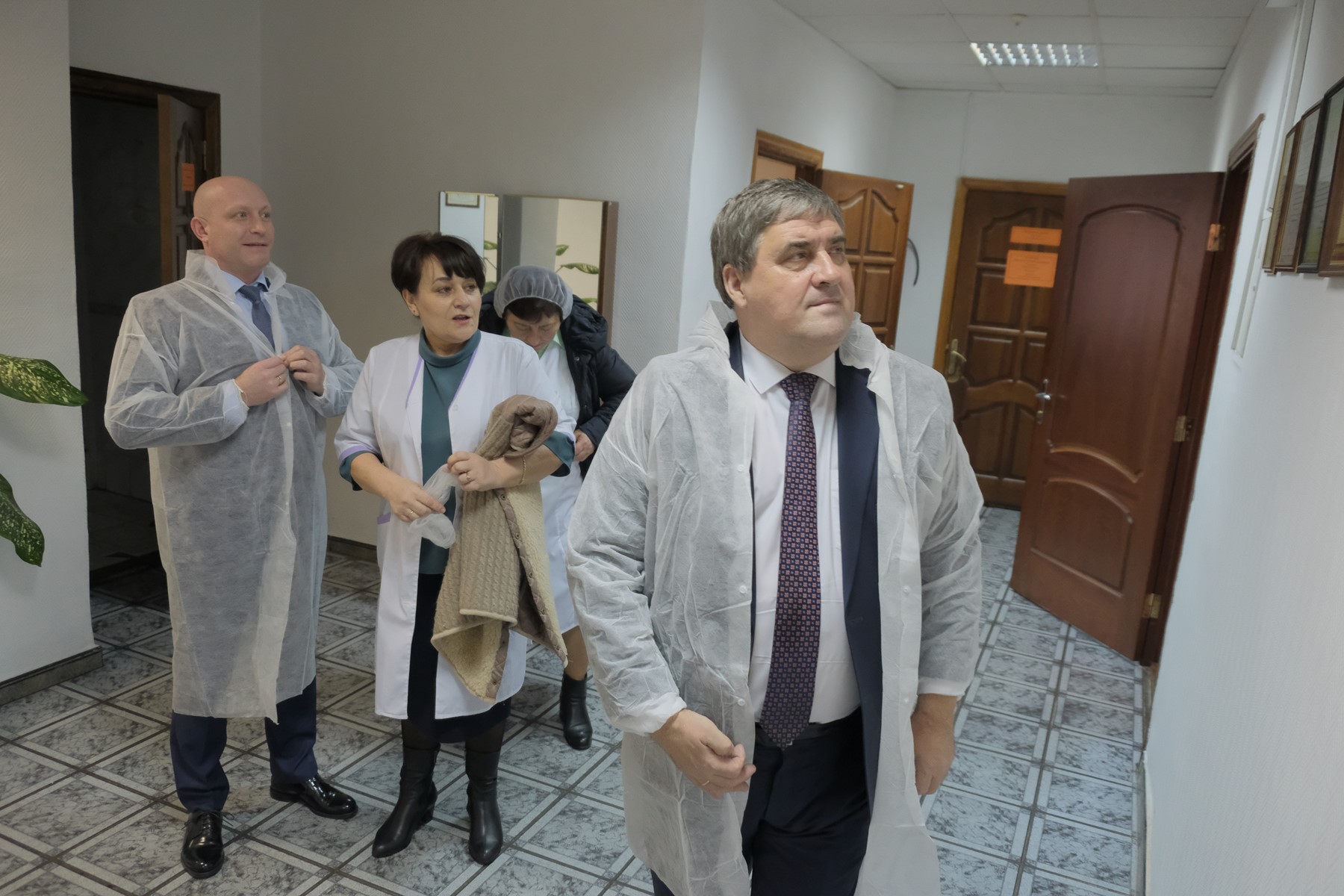 Алексей Силанов и Юрий Самородов в сопровождении директора завода Аллы Ошитковой прошли по цехам, диспетчерской, лаборатории, медицинскому блоку.
