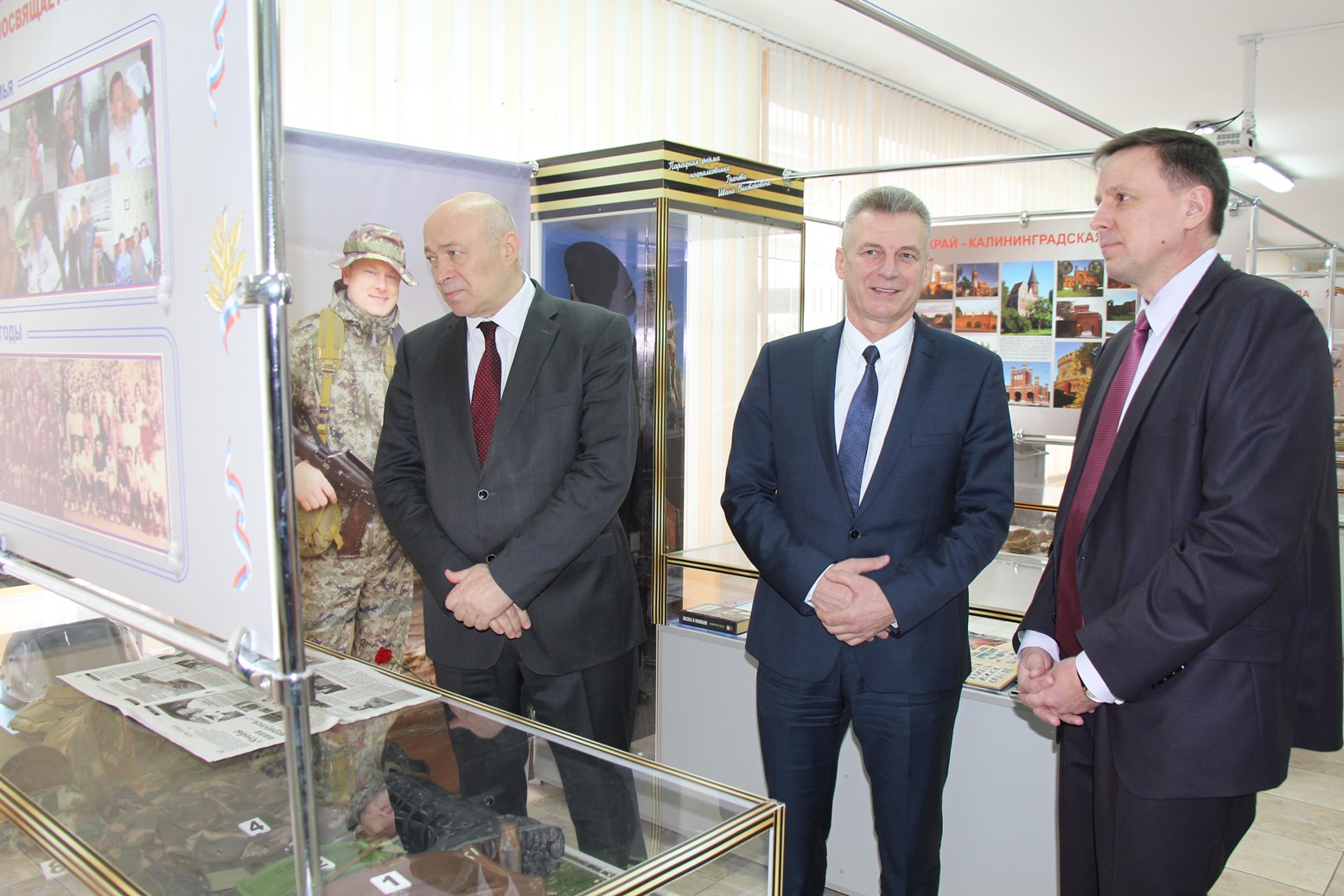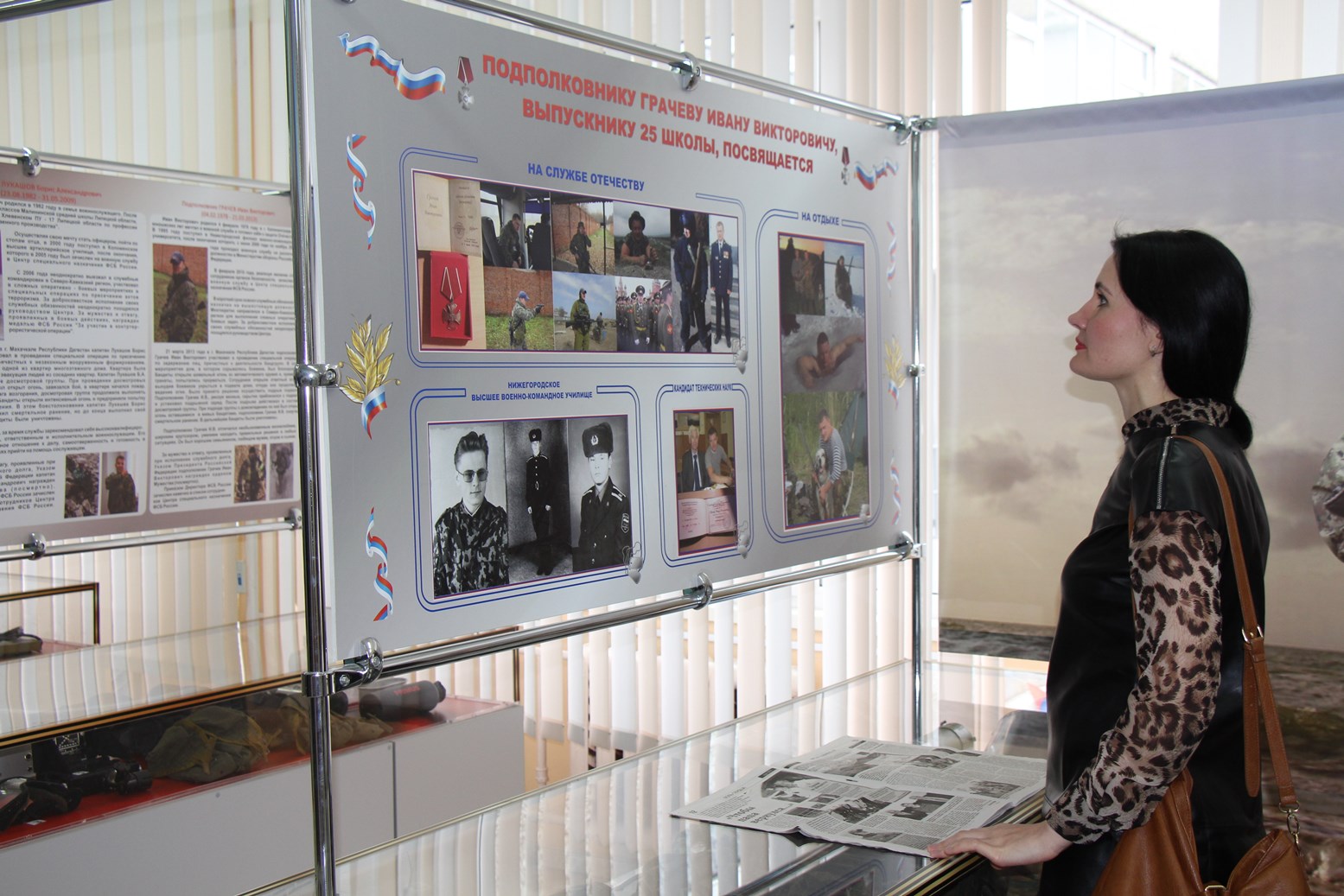 Гости посетили школьный музей, часть экспозиции которого посвящена Ивану Грачёву, и выставку патриотических полотен, посвящённых боевым будням военнослужащих специальных подразделений.