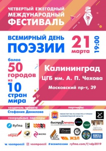 21 марта в 19.00 в Центральной городской библиотеке им. А. П. Чехова (Московский проспект, 39) состоится гала-концерт и чествование лауреатов IV Международного фестиваля «Всемирный день поэзии».