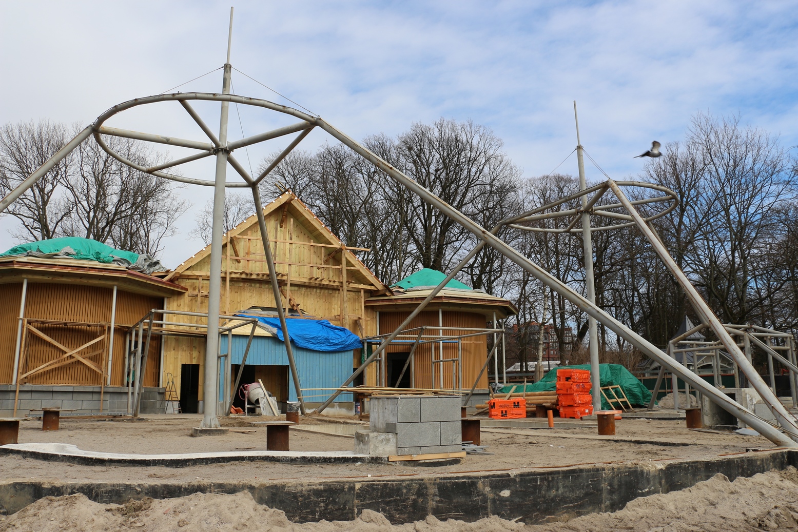 Открытые вольеры создаются в виде площадок с ограждающими конструкциями из сетки, натянутой по металлическим канатам и трубам, закрепленным к центральной металлической стойке. Одновременно в здании зимних вольеров смогут находиться до 50 посетителей – 50 человек, пропускная способность птичьего дома предусмотрена до 100 чел/час.