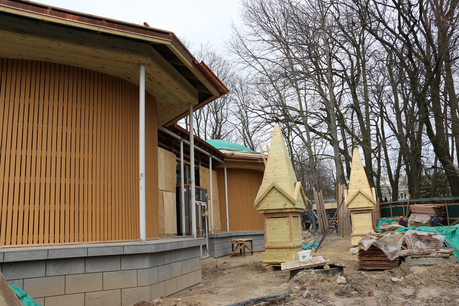 Новые наземные конструкции каркаса и стропильной системы – это копии существующих. Те элементы, которые остались после демонтажа львятника и не утратили полностью свою несущую способность и конструктивную надежность, после реставрации послужат и в новом доме тропической птицы.