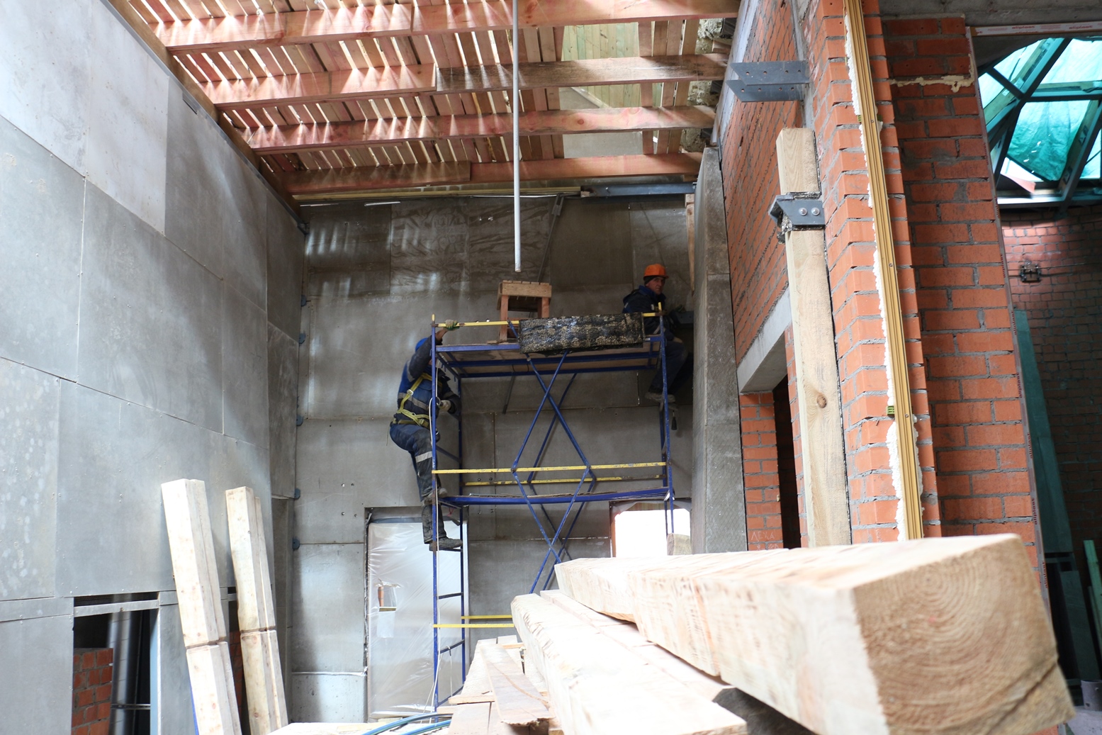 Сейчас на будущем птичнике выполняются работы по укладке плитки в хозблоке, устанавливаются отреставрированные подкосы, оборудование в теплопункте, зашиваются фронтоны, благоустраивается территория. Общее количество работающих на объекте – 36 человек.