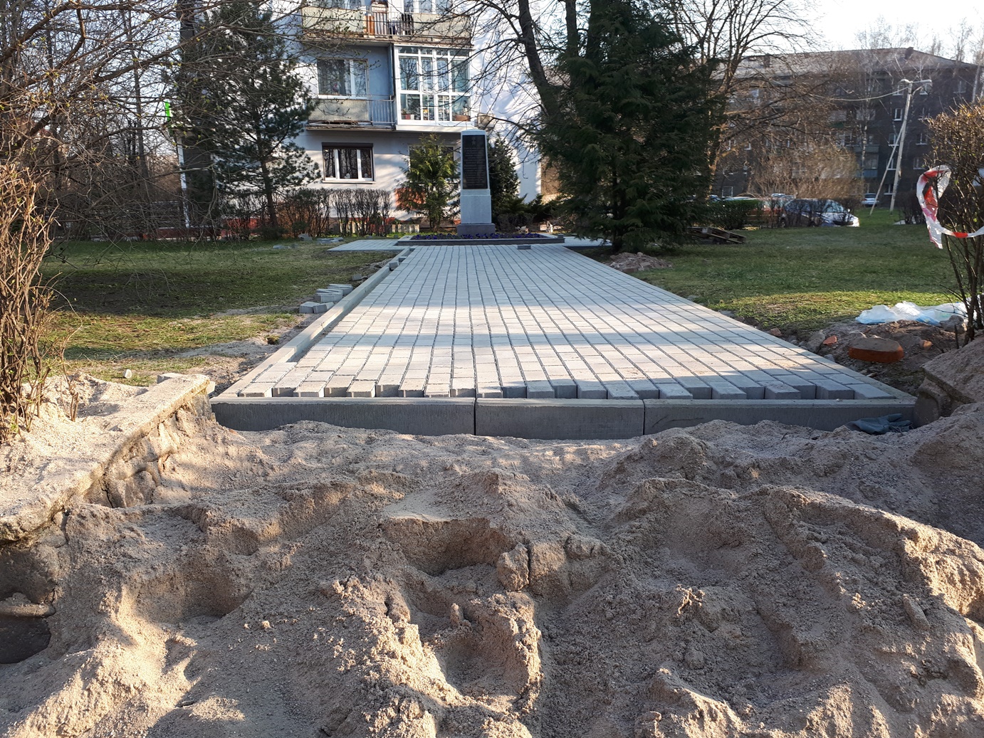 У памятного знака А.Рыбникову на пересечении улиц Зоологической и Чайковского благоустроительные работы завершаются, уложена тротуарная плитка, оформлено основание знака и цветник. Есть предложение облагородить пространство вокруг, превратив его в небольшой сквер.