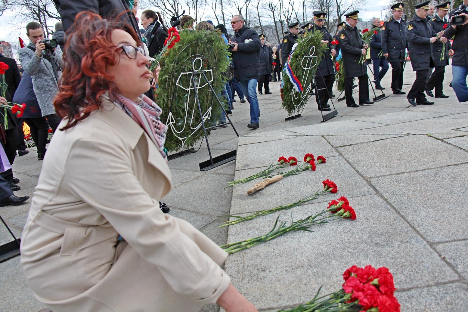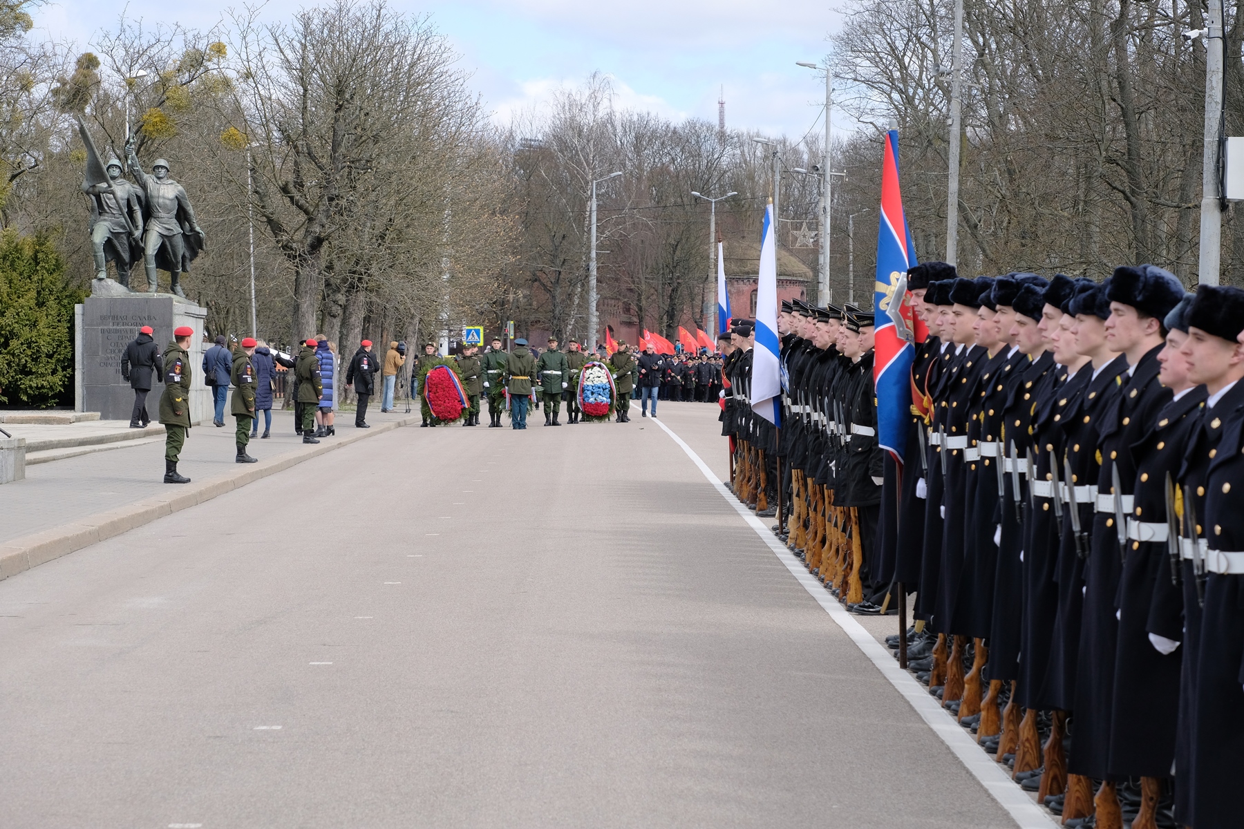 Сегодня, 9 апреля, в Калининграде состоялась торжественная церемония возложения венков и цветов к памятнику 1200 воинам 11-й гвардейской армии, погибшим при штурме Кёнигсберга.