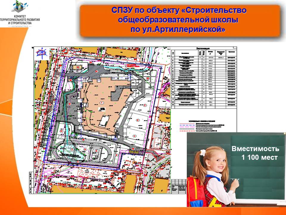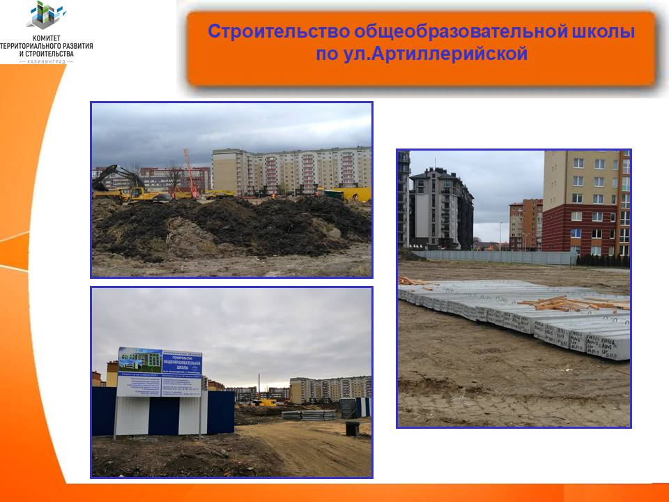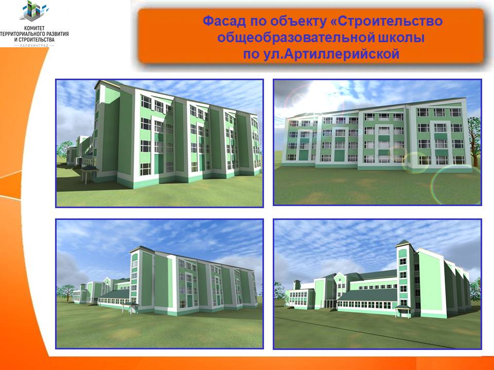 Что касается общеобразовательных учреждений, председатель КТРиС доложил о ходе работ на строящейся школе на ул. Аксакова (на 1700 мест), которая должна принять учеников 1 сентября этого года, и на ул. Артиллерийской (на 1100 мест), открытие которой планируется осенью следующего года. На перспективу в Калининграде планируется построить школы в других частях города: на ул. Рассветной, на Каштановой аллее (корпус школы № 50 на 900 мест), в Юго-Восточном и Южном жилом районе, на ул. Героя России Мариенко, на ул. Мира в Чкаловске и новый корпус общеобразовательной школы № 46 на ул. Летней.