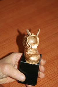 Символом и призом конкурса «Журналист года - 2008» в Калининграде стал стоптанный башмак с крылышками на гранитной подставке.