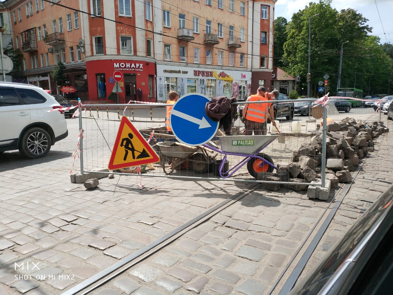 На проспекте Мира в течение мая идёт перекладка брусчатки на проезжей части.