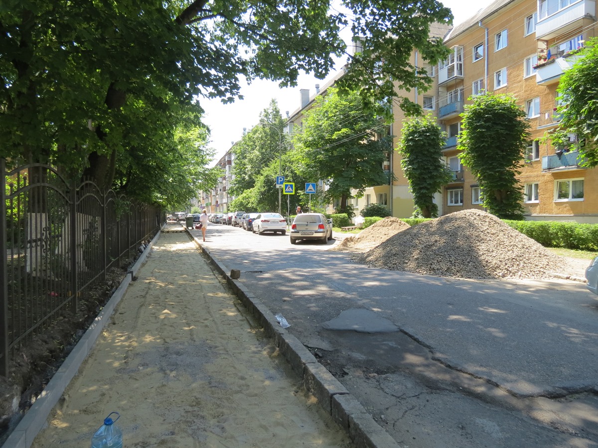 Ремонт начался в последнюю неделю мая и продлится до конца июня. Сейчас уже разобрано асфальто-бетонное покрытие, оборудуется основание из песка в районе детского сада. Часть дороги при этом иногда вынужденно используется для организации процесса ремонта: складирования материала, проезда техники и передвижения рабочих.