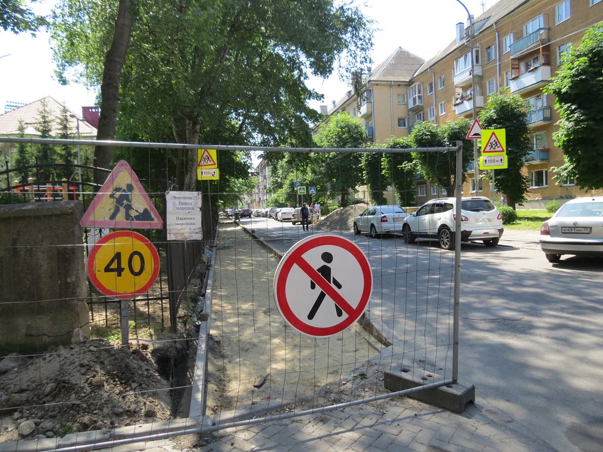 Выставлены знаки ограничения скорости и знак производства работ. Поскольку проезжая часть не перекрыта, многие автомобилисты по привычке сворачивают с проспекта Мира на Гостиную, в результате образуются заторы. А это влечёт за собой не только увеличение времени в пути, но и затруднение для дорожников, которые вынуждены выполнять свою работу, рискуя оказаться под колёсами автомобилей. Просьба к автомобилистам по возможности выбирать объездные пути, а ул. Гостиную до окончания ремонта тротуара использовать только в случае крайней необходимости.