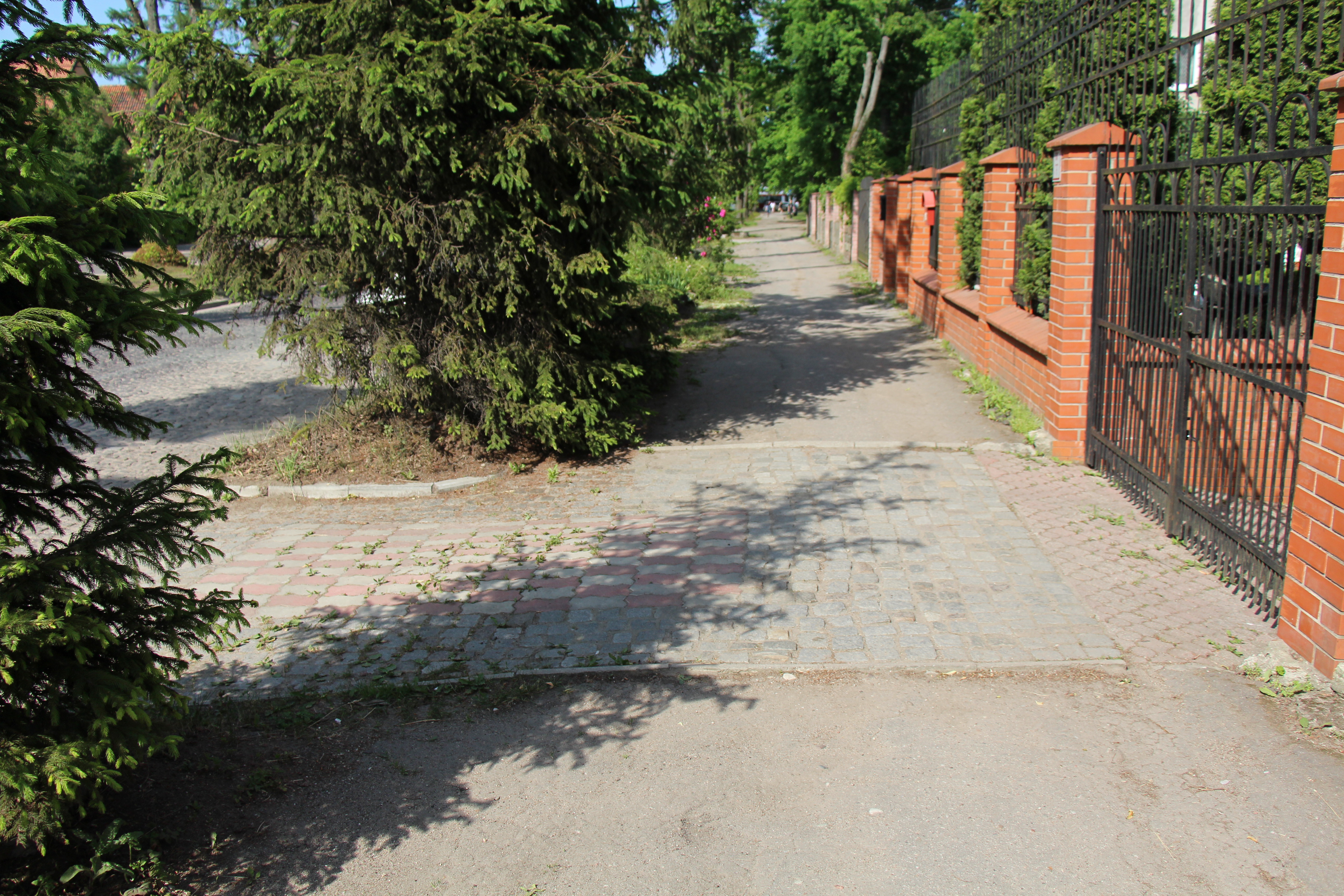 У будущего тротуара – одна особенность. На ул. Тельмана – частные дома, и владельцы особняков оборудовали подъезды к своим дворам, уложив на части пешеходной дорожки тротуарную плитку, булыжник или просто бетонные плиты. В результате получилось такое «лоскутное одеяло», которое предстоит разобрать и сделать тротуар единообразным на всём протяжении.