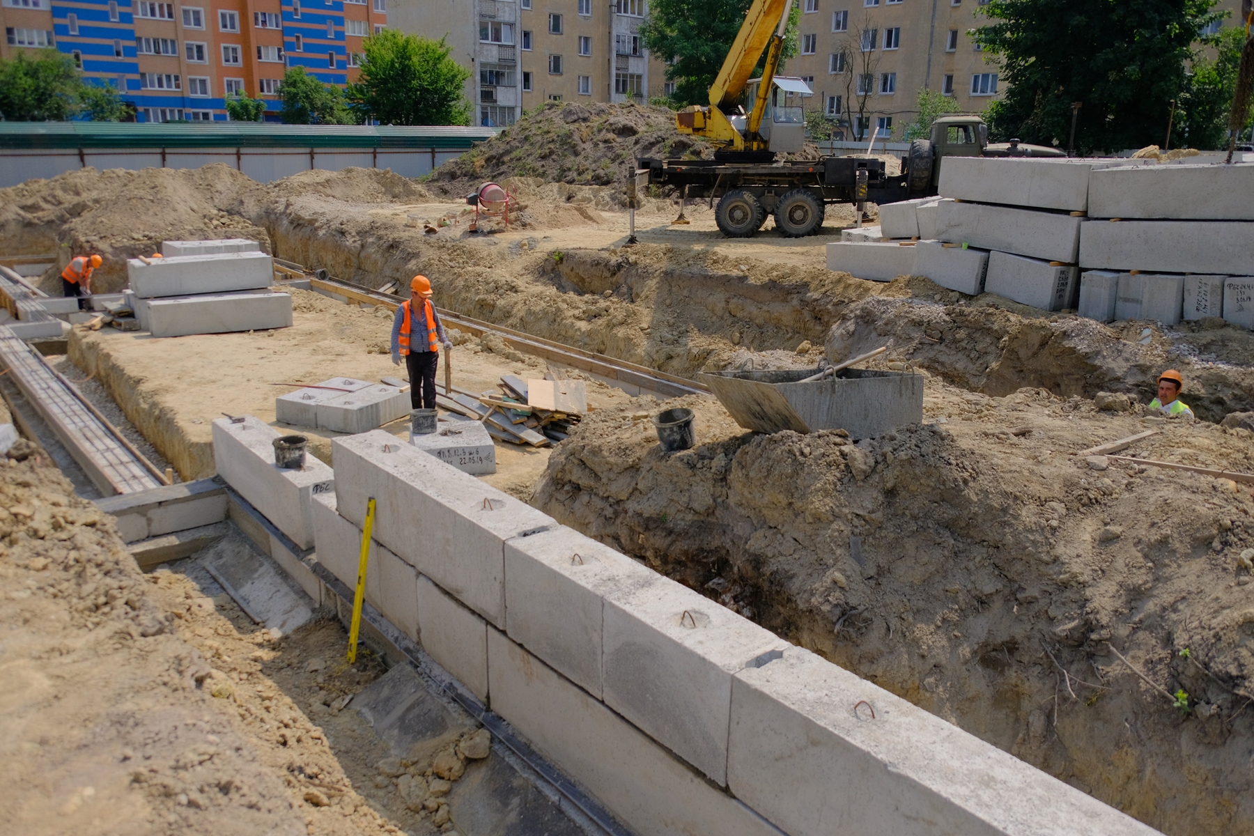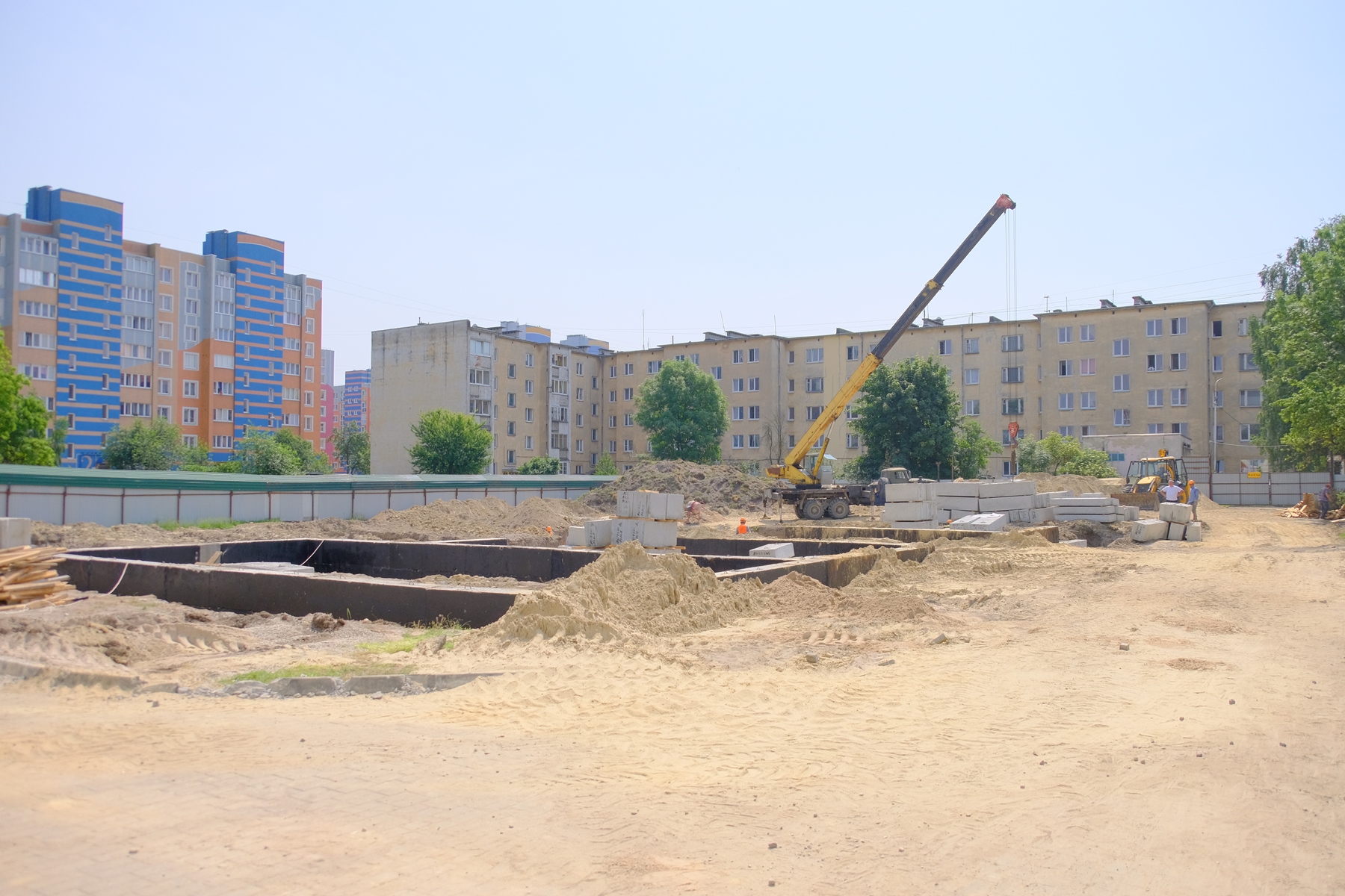 Выполнены следующие работы: ограждение строительной площадки, временное электроснабжение, устройство строительного городка, разработка котлована, устройство щебеночной подготовки под фундаменты. Выполняются работы: устройство ленточных фундаментов здания пристройки, прокладка сетей дождевой канализации К2, устройство основания под игровые площадки, демонтаж проездов и тротуаров.