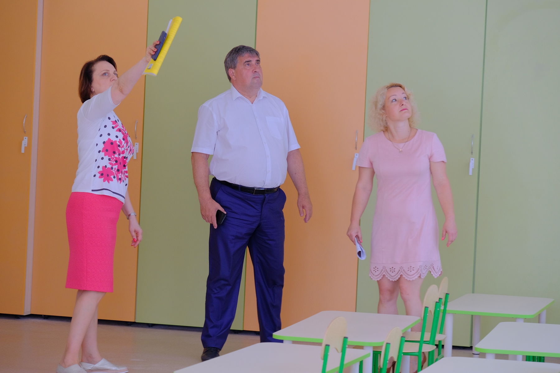 Глава города вместе с председателем комитета по образованию Татьяной Петуховой осмотрели помещения, оборудование, игровые площадки. Второй этаж здания готов. Срок окончания работ - 20.06.2019.