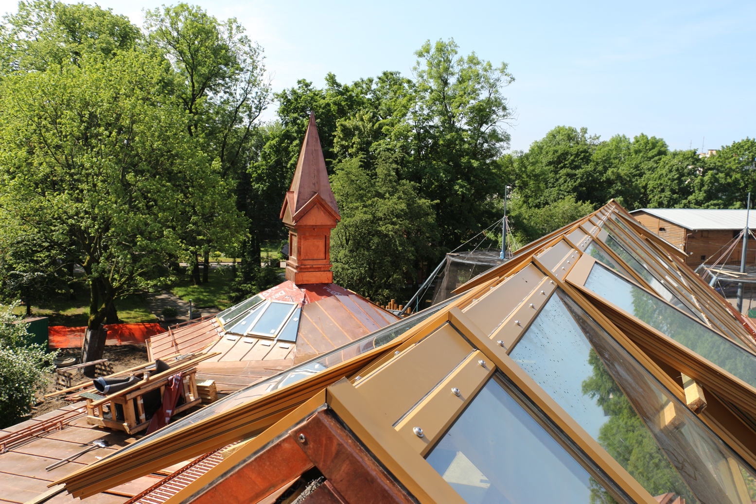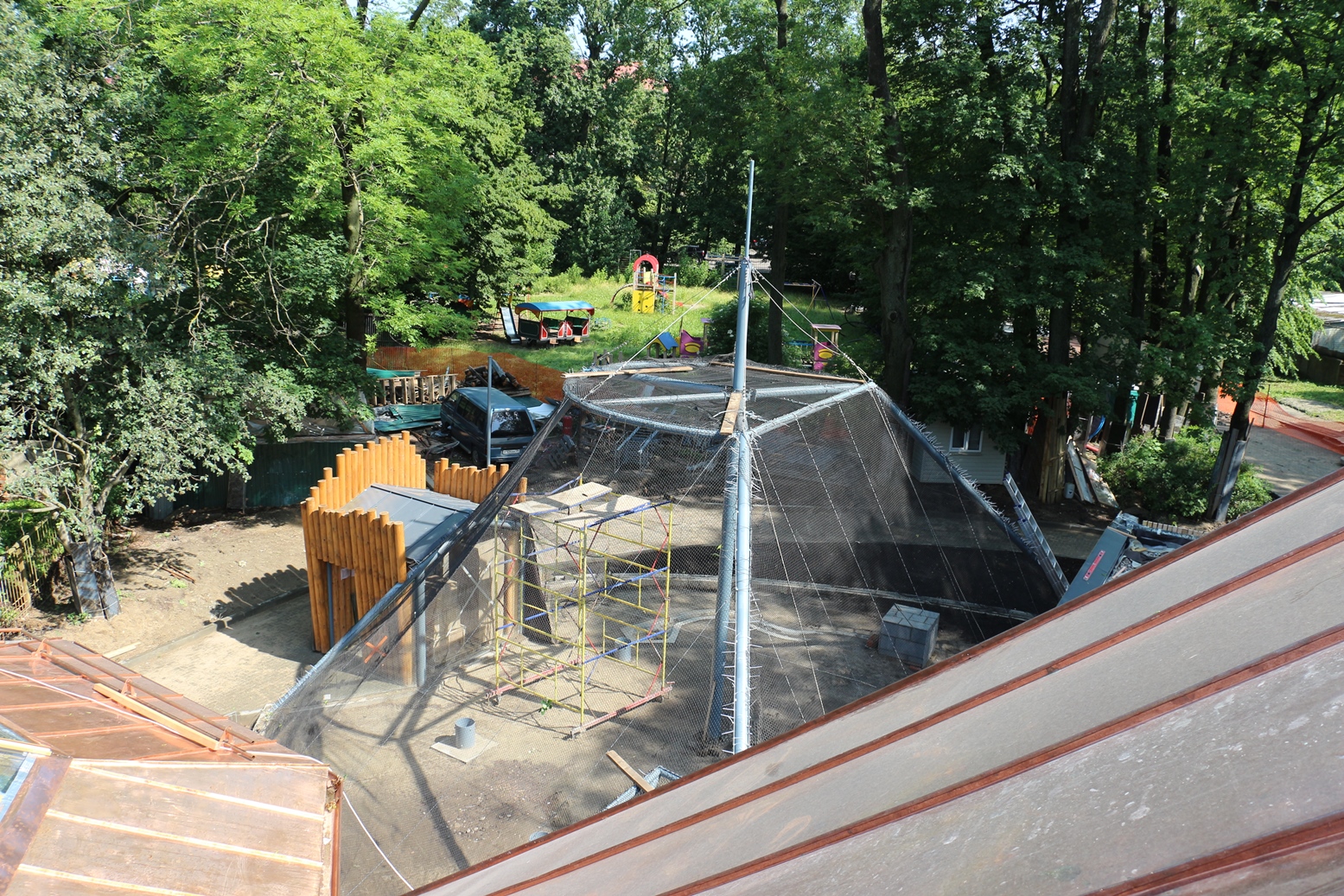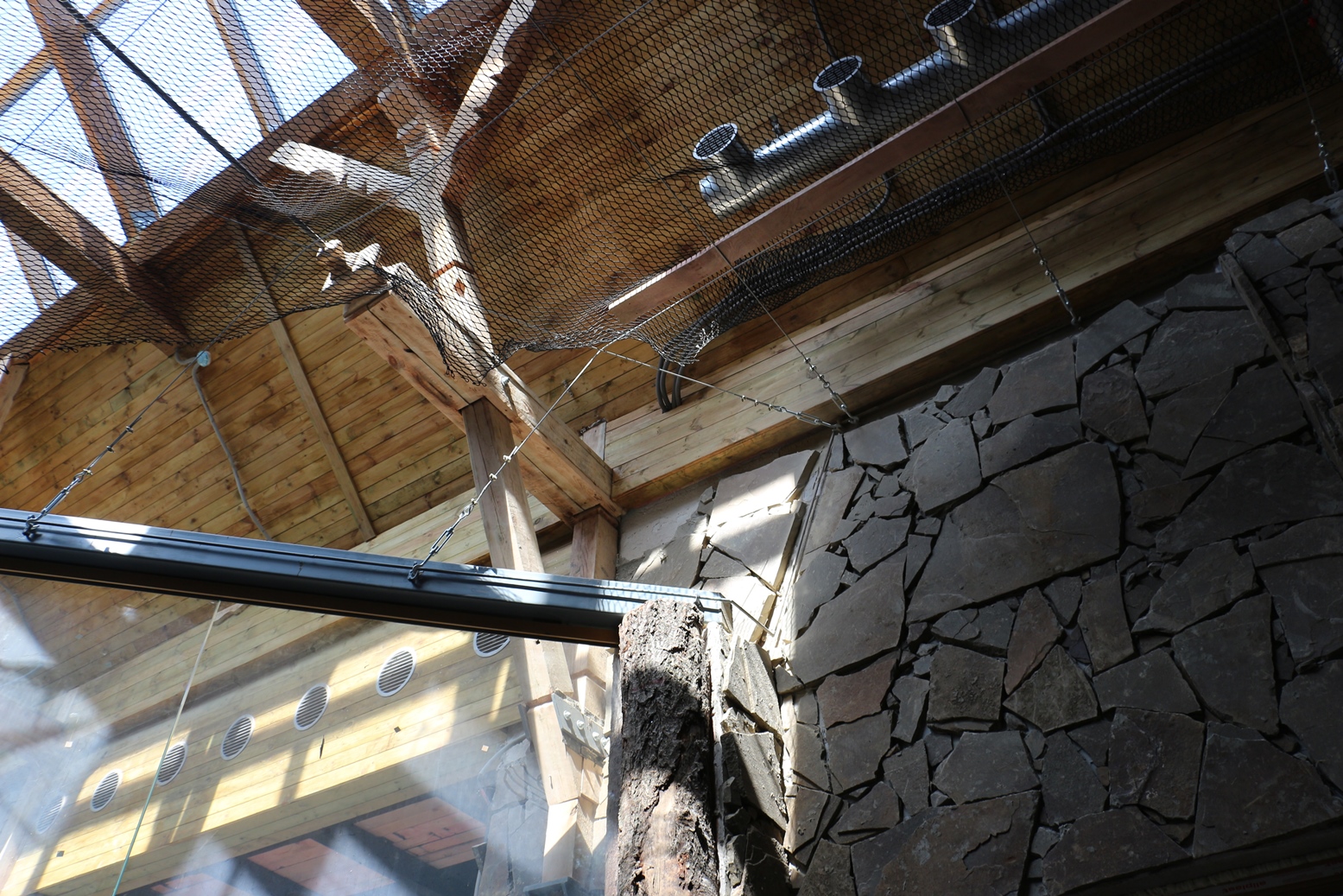 Новые наземные конструкции каркаса и стропильной системы птичника – это копии существовавших прежде. Те элементы, которые остались после демонтажа львятника и не утратили полностью свою несущую способность и конструктивную надежность, отреставрированы и послужат теперь и в доме тропической птицы.
