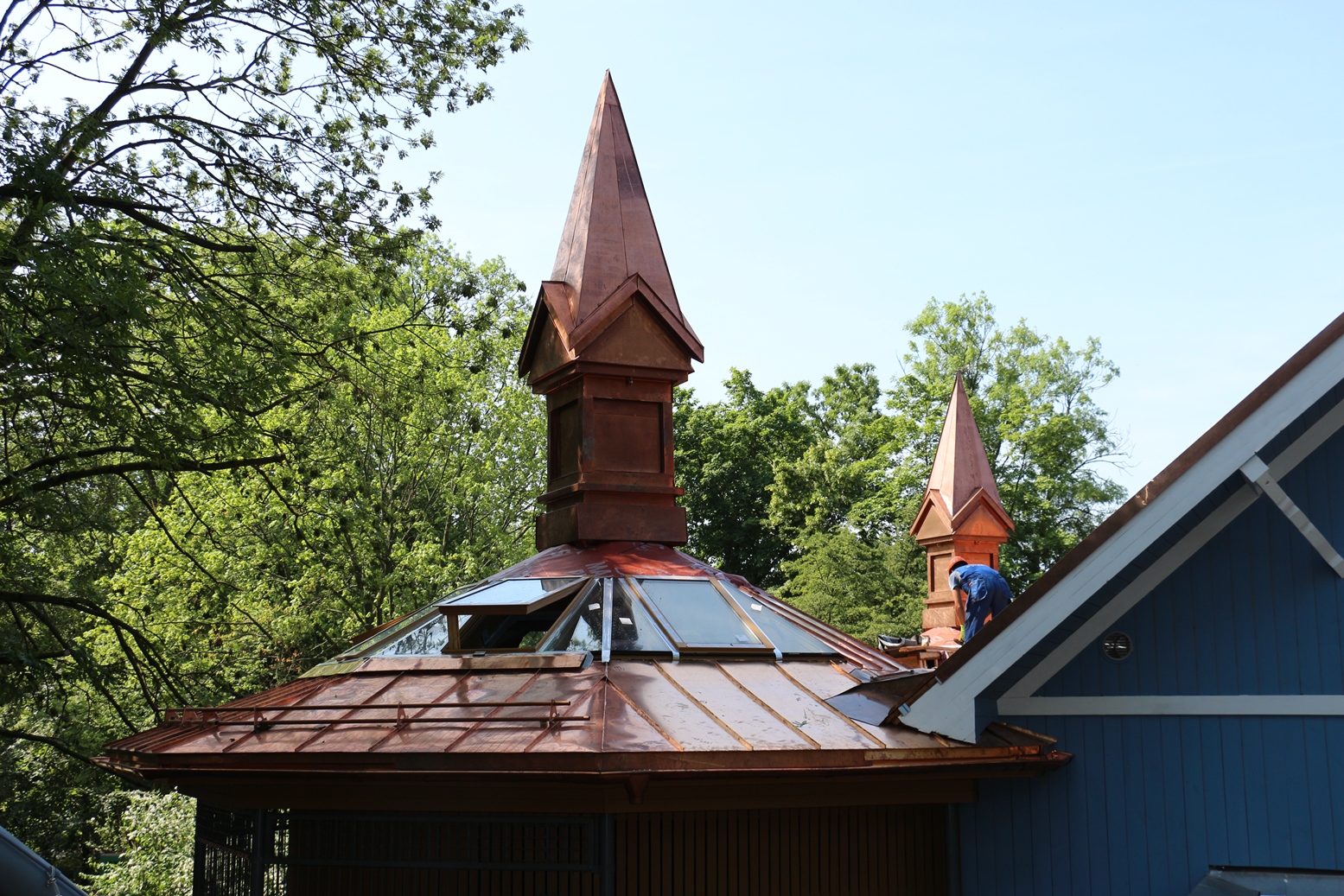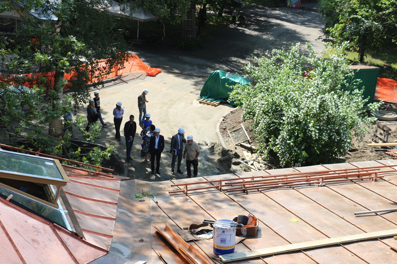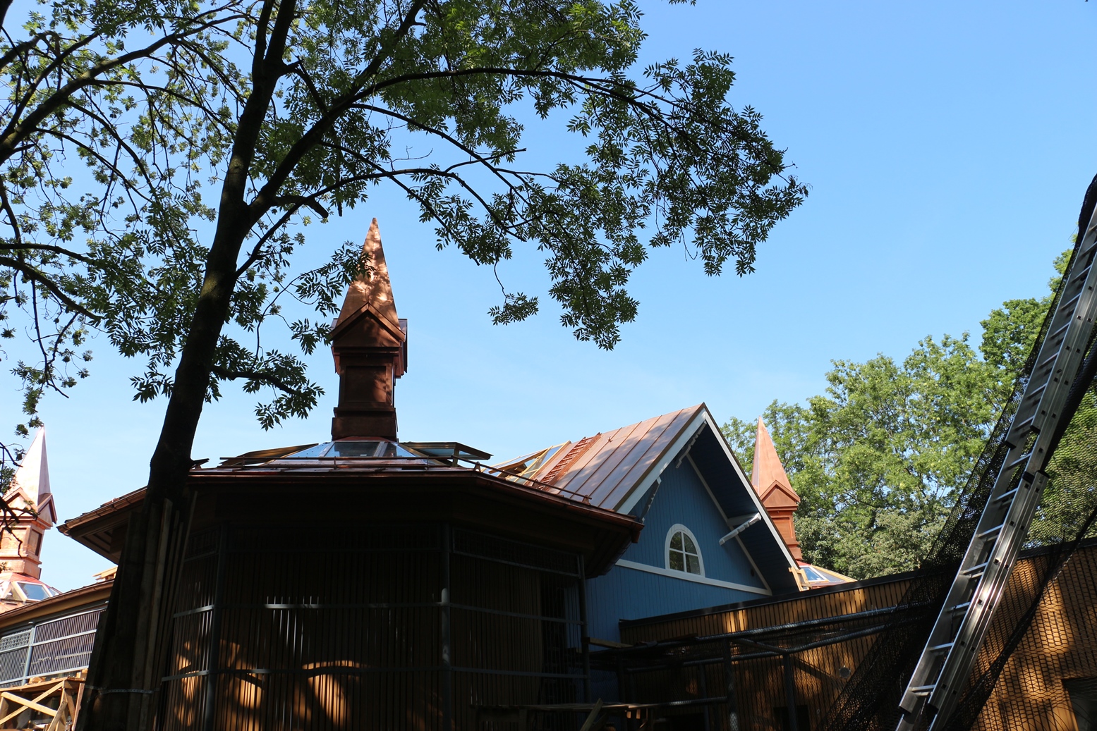 Новые наземные конструкции каркаса и стропильной системы птичника – это копии существовавших прежде. Те элементы, которые остались после демонтажа львятника и не утратили полностью свою несущую способность и конструктивную надежность, отреставрированы и послужат теперь и в доме тропической птицы.