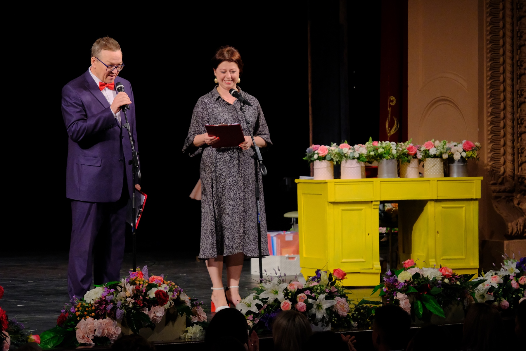 Выпускники этого класса уже отправились покорять столичные театральные ВУЗы, поэтому традиционную постановку за них на главной сцене региона представили их младшие товарищи из 10-го класса.