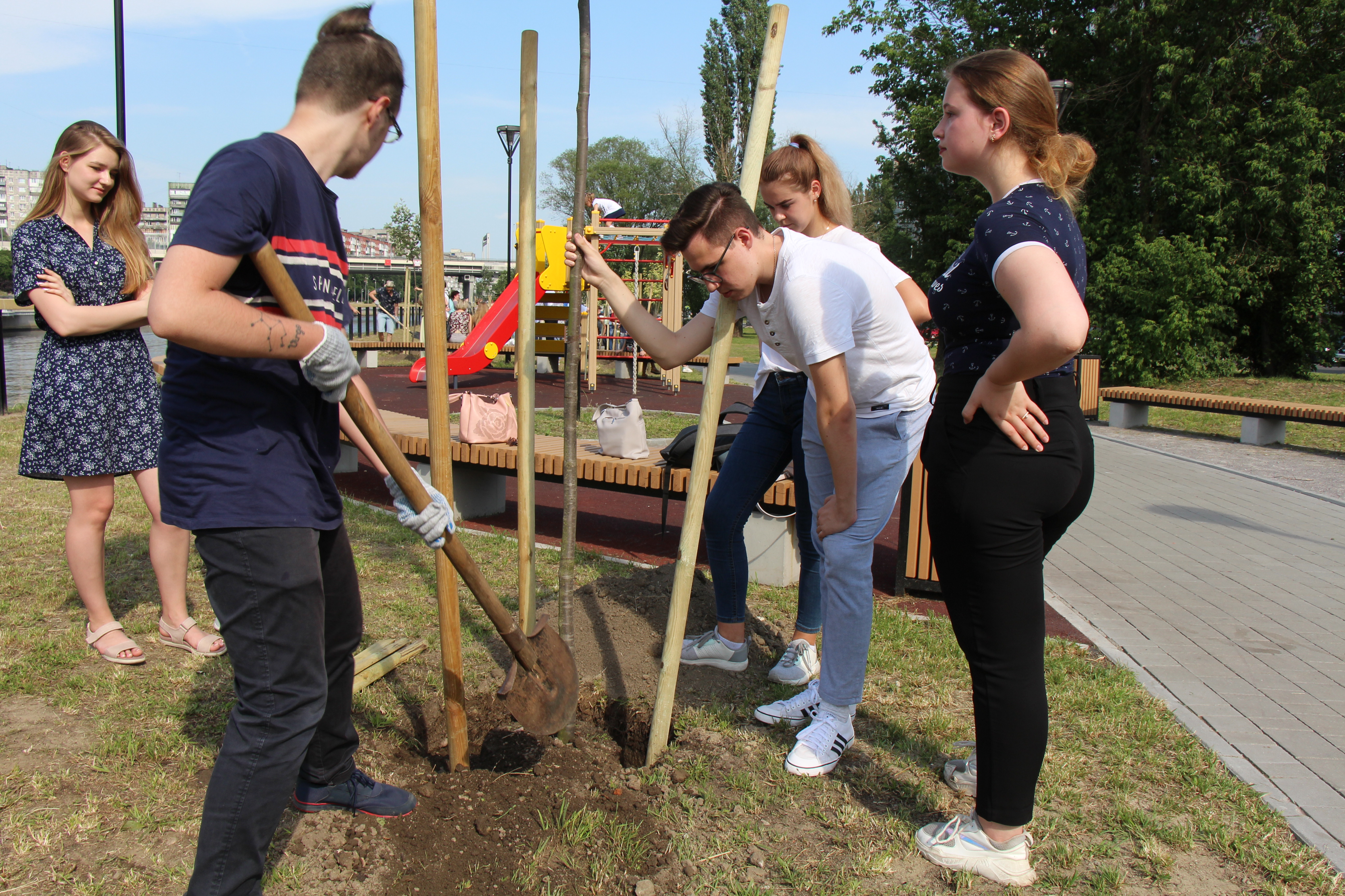 К слову, посаженные выпускниками в прошлом году 125 грабов на границе Южного парка и Аллеи Смелых стопроцентно прижились и уже образовали в этом месте зелёную стену.