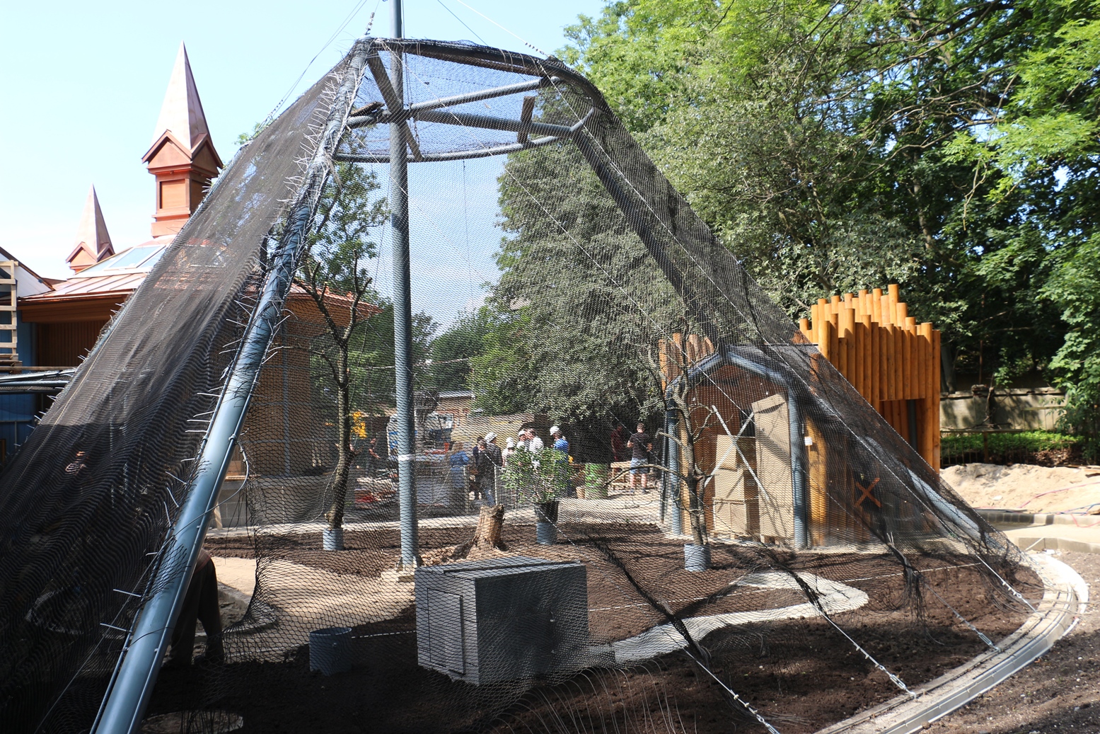 В новом жилище птиц оборудовали несколько смотровых площадок. Есть, как застекленные закрытые помещения в зимних вольерах, между которых проложена деревянная дорожка для удобного перемещения посетителей. На улице есть «избушки» с панорамными окнами в авиариум (вольер, предусматривающий полеты птиц), которые позволят укрыться от жаркого солнца и непогоды. Кроме того, практически завершены две смотровых площадки с прямым выходом в вольер для контакта с пернатыми. Эти площадки планируется защитить, помимо прозрачных дверей, дополнительной сеткой, чтобы исключить возможность вылета птиц на территорию зоопарка.