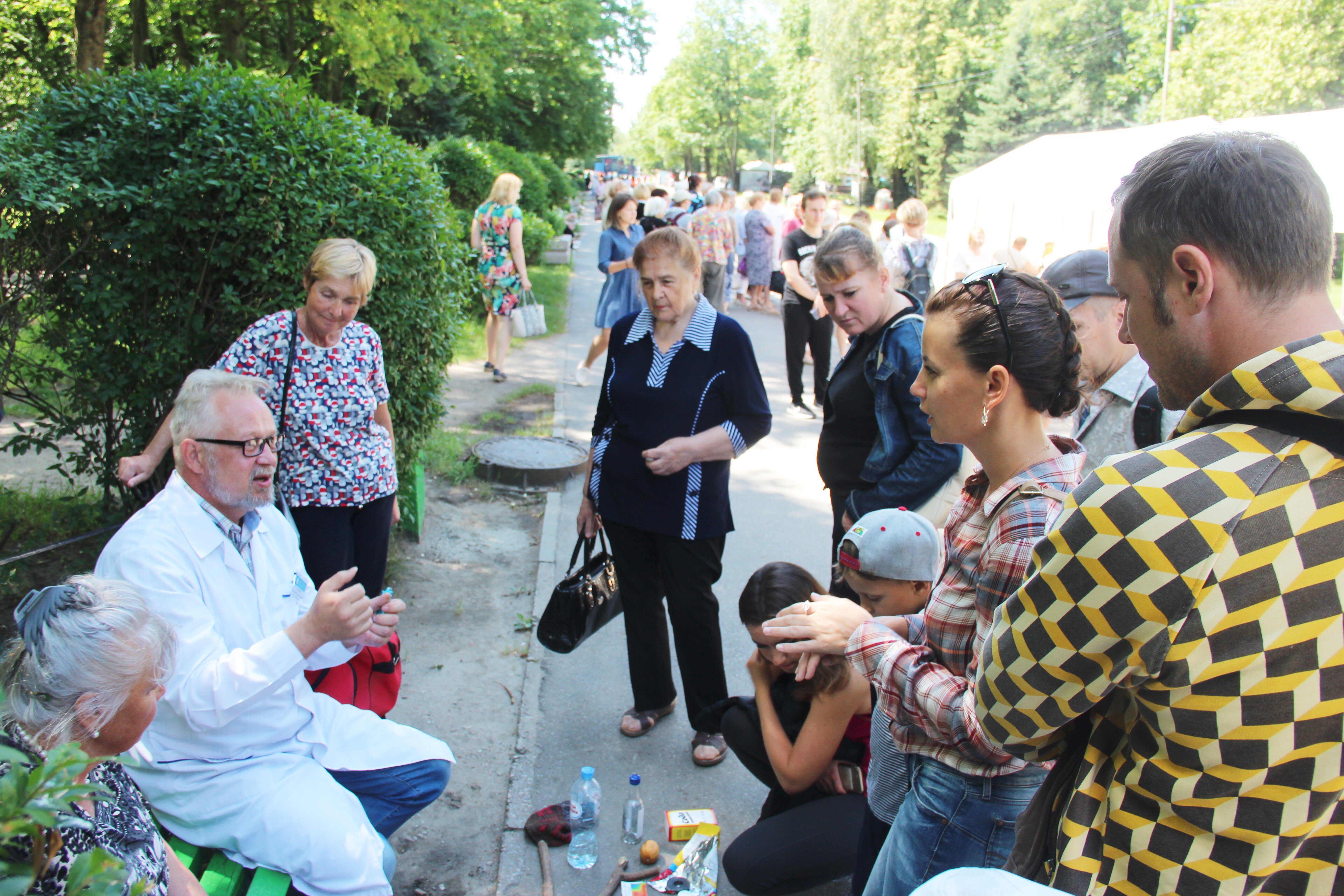 В парке развернулся целый комплекс оздоровительных услуг, где любой желающий мог получить консультации врачей: диетолога, кардиолога, невролога, врача по медицинской профилактике, измерить артериальное давление, уровень глюкозы в крови, индекс массы тела, а также посетить лекцию-тренинг «Оказание первой помощи». Можно было поучаствовать в зарядке с титулованным спортсменом по рукопашному бою Алексеем Волковым и принять участие в легкоатлетических забегах на пять и 1,6 км, а также на 300 метров, организованных легкоатлетическим клубом «Пруссия» в рамках проекта «Спортивные выходные».