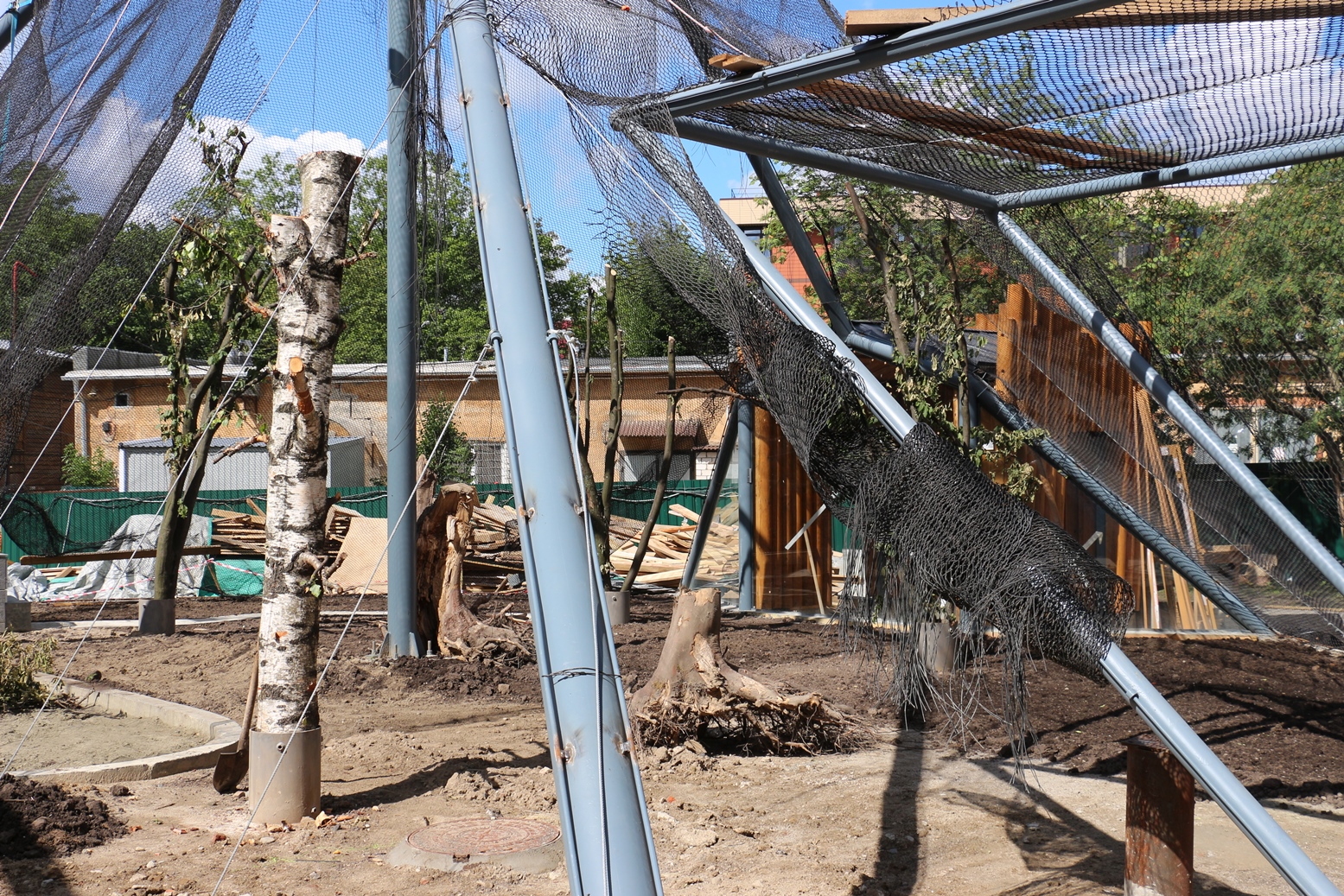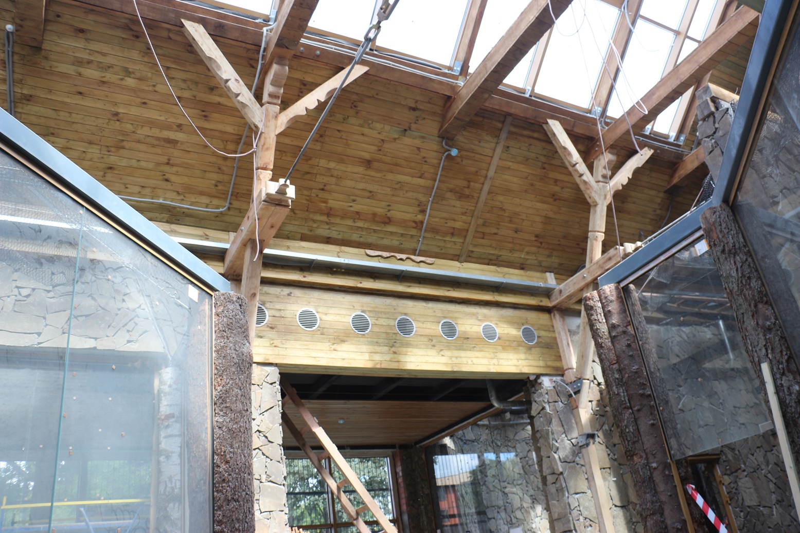 Помимо того, что птичник оборудован отоплением, водоснабжением, вентиляцией и другими сетями, его снабдили элементами декора, способными разнообразить проживание птиц в авиаруме (вольере, предусматривающем полеты птиц). Сухие деревья, пни, коряги, ветки, трава предназначены для того, чтобы максимально приблизить среду вольера к биотопу тропических птиц (биотоп – естественная среда обитания).