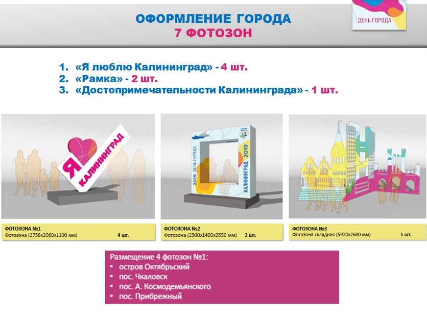 В рамках Дня города будут установлены семь новых фотозон: четыре «Я люблю Калининград», две «Рамки» и фотозона «Достопримечательности Калининграда».