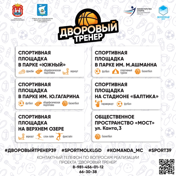 С начала лета и до конца октября при грантовой поддержке Министерства спорта Калининградской области на спортивных площадках Калининграда МАУ «Молодежный центр» реализуется проект «Дворовый тренер».