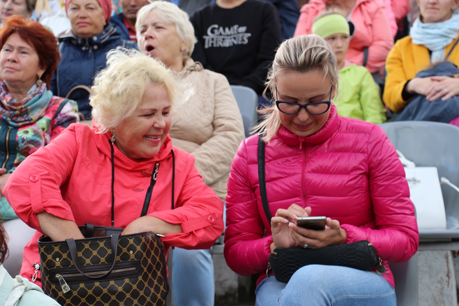 Концерт, начавшийся в 17 часов, очень быстро набрал аудиторию. Калининградцы и гости города стекались под музыку на певческое поле целыми семьями, с детьми, с друзьями. Кто-то чинно рассаживался по рядам перед сценой. Кто-то вольно располагался прямо на траве. Кто-то мгновенно втянулся в атмосферу праздника и тут же оказался на танцполе. До позднего вечера одни зрители сменяли других, и у всех выступающих была обширная аудитория, которая щедро отдавала артистам свою энергию. Участники праздника дружно аплодировали, с удовольствием подпевали знакомые произведения.