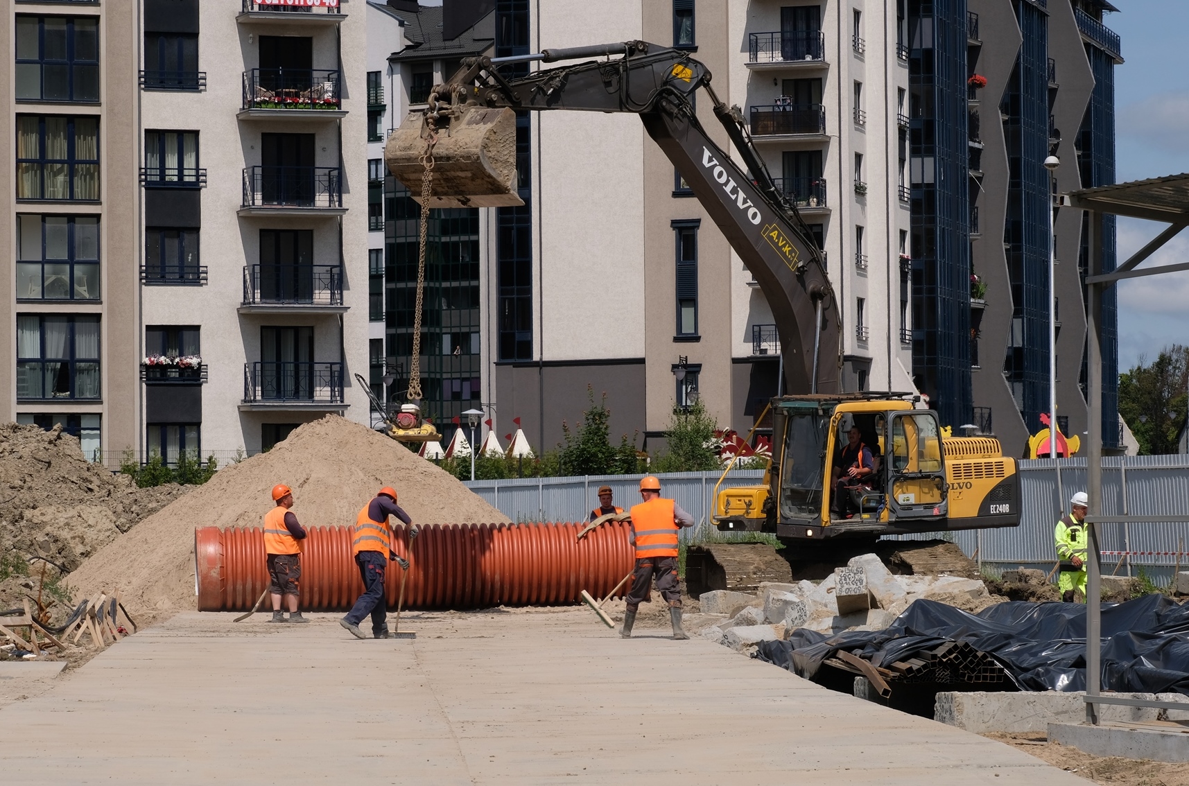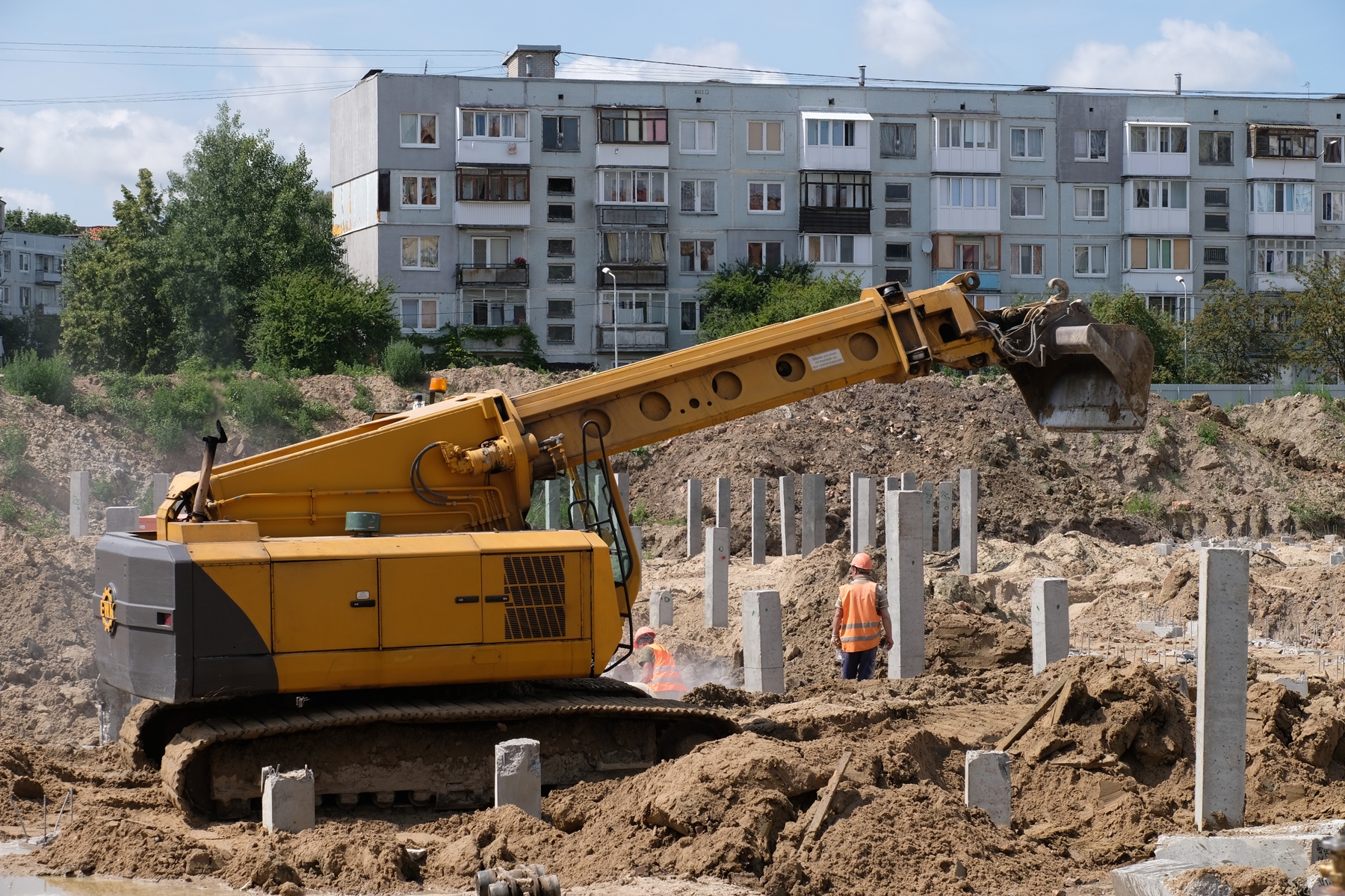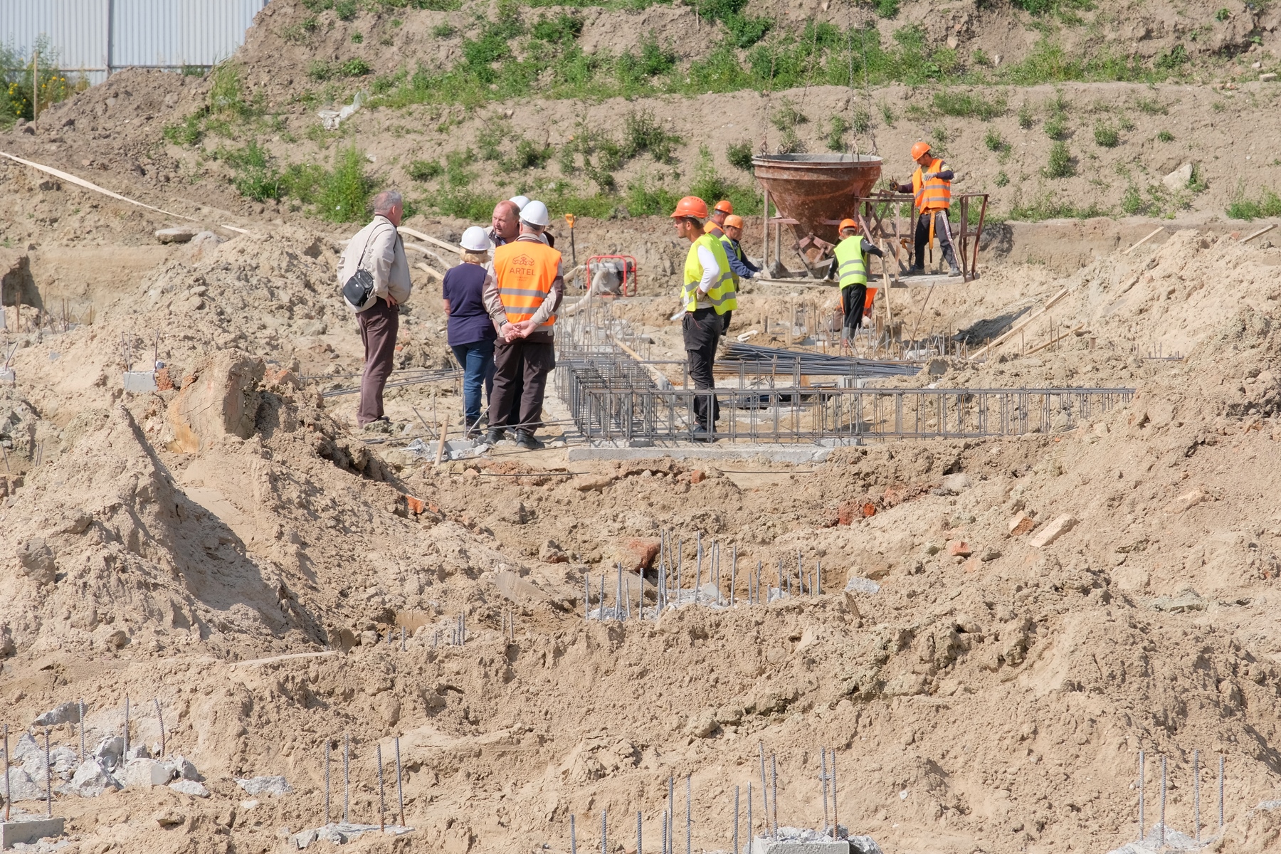 Сейчас на стройплощадке завершено устройство свайного поля. Строители приступили к работам по созданию фундамента.
