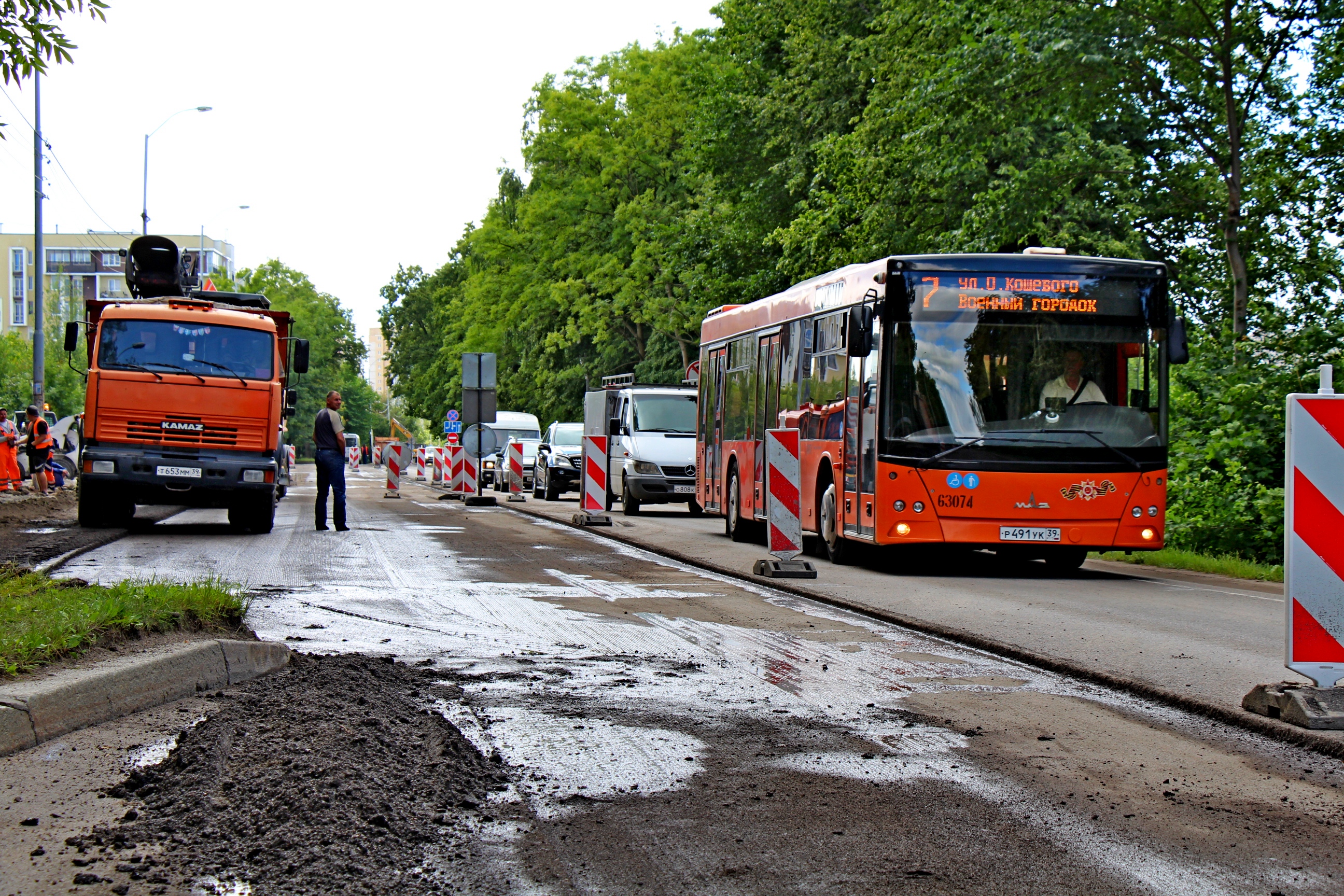 Кроме улицы Горького, в рамках нацпроекта в июле ремонтируют участок Балтийского шоссе, где уже уложили нижний слой асфальта.